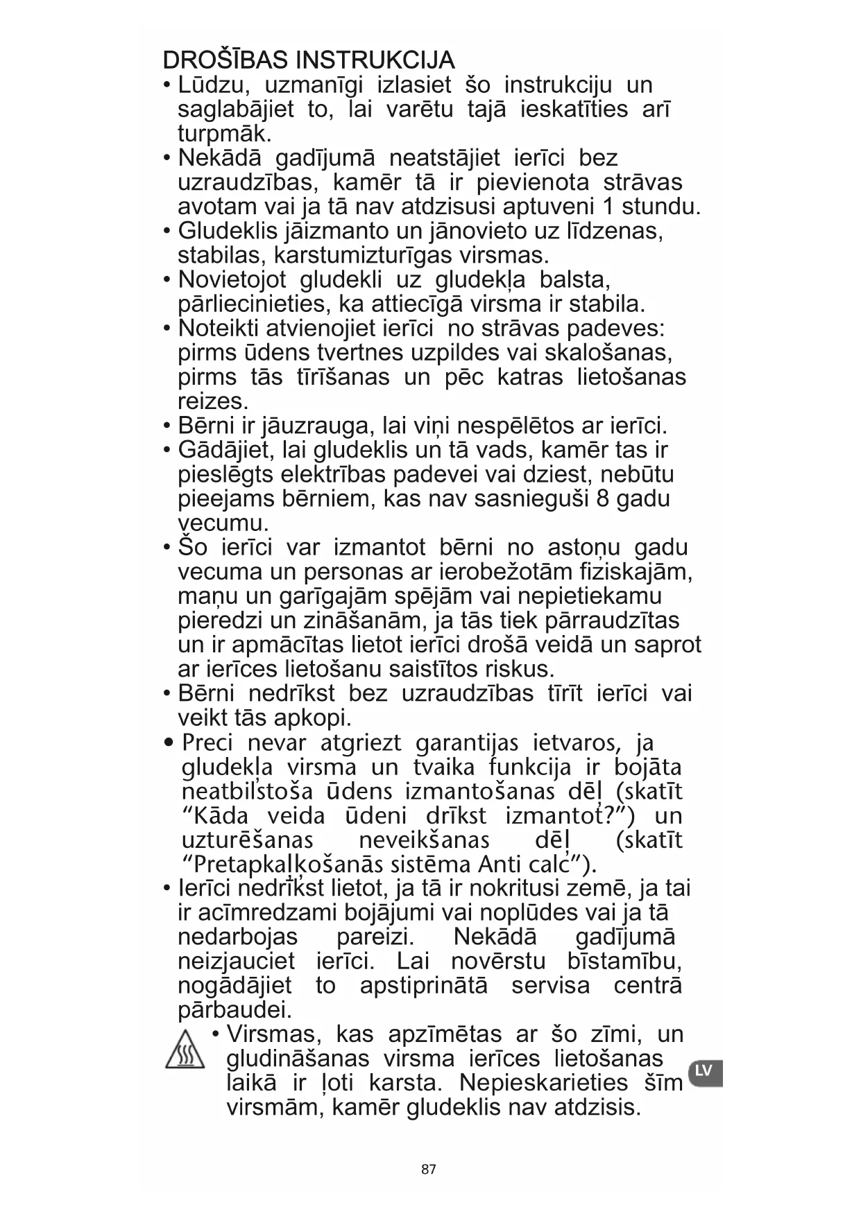 • Ierīce rada tvaikus, kas var izraisīt apdegumus, it sevišķi gludinot tuvu gludināmā dēļa malai.