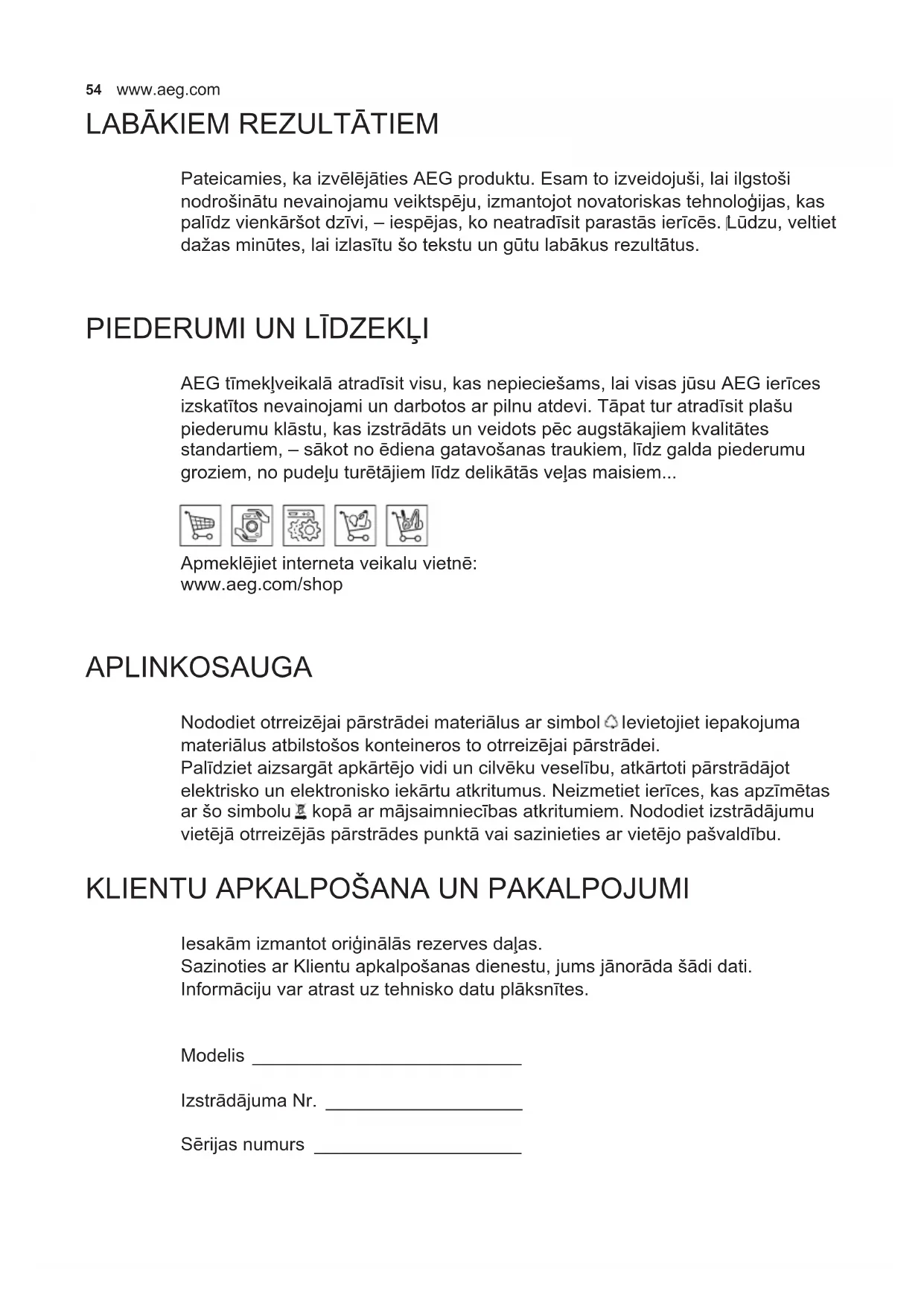PIEDERUMI UN LĪDZEKĻI AEG tīmekļveikalā atradīsit visu, kas nepieciešams, lai visas jūsu AEG ierīces