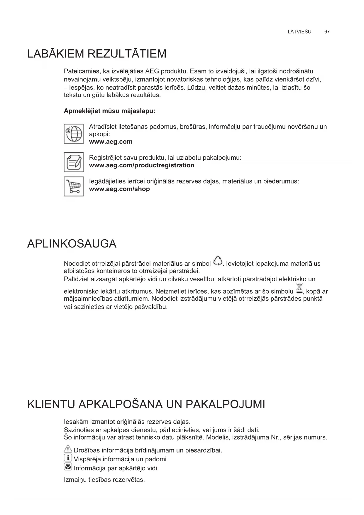 LATVIEŠU Pateicamies, ka izvēlējāties AEG produktu. Esam to izveidojuši, lai ilgstoši nodrošinātu