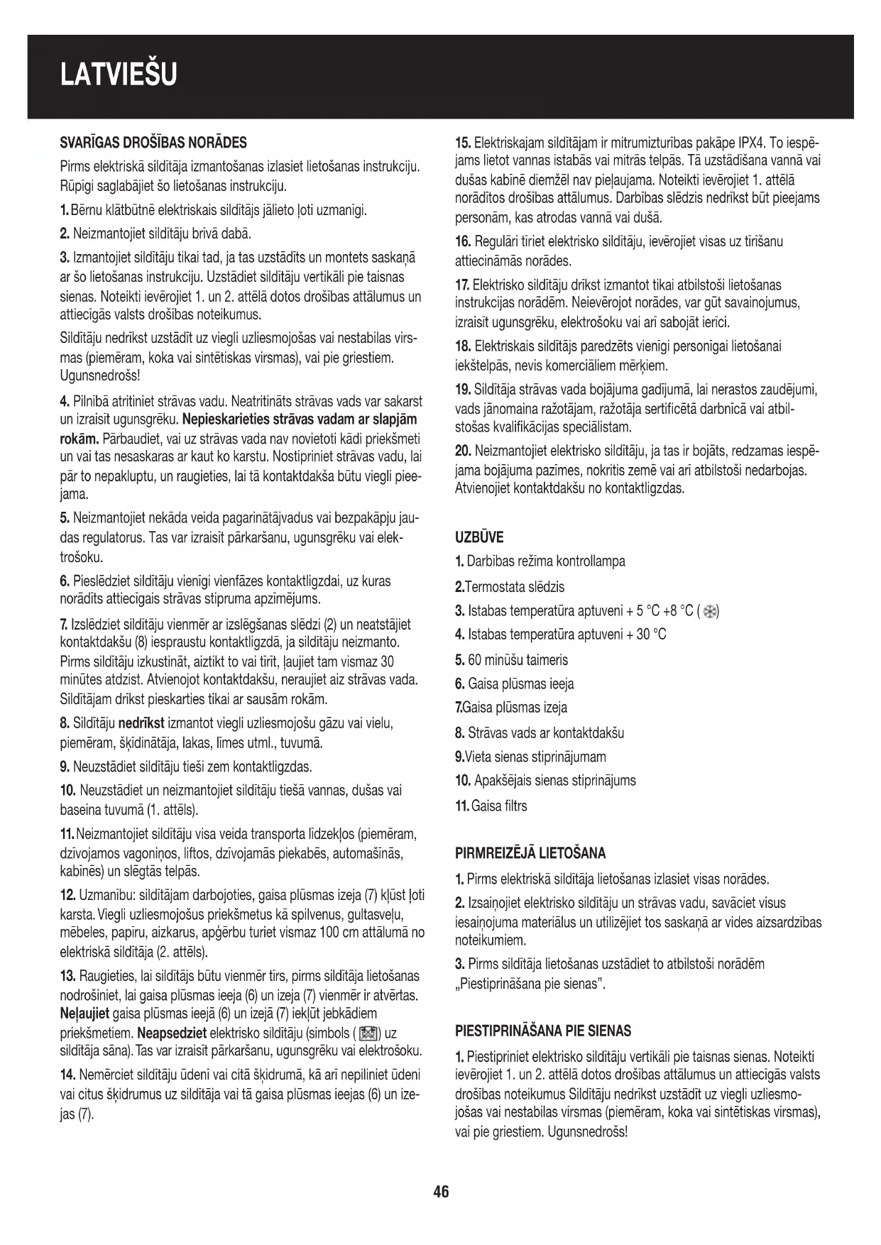 SVARĪGAS DROŠĪBAS NORĀDES Pirms elektriskā sildītāja izmantošanas izlasiet lietošanas instrukciju.