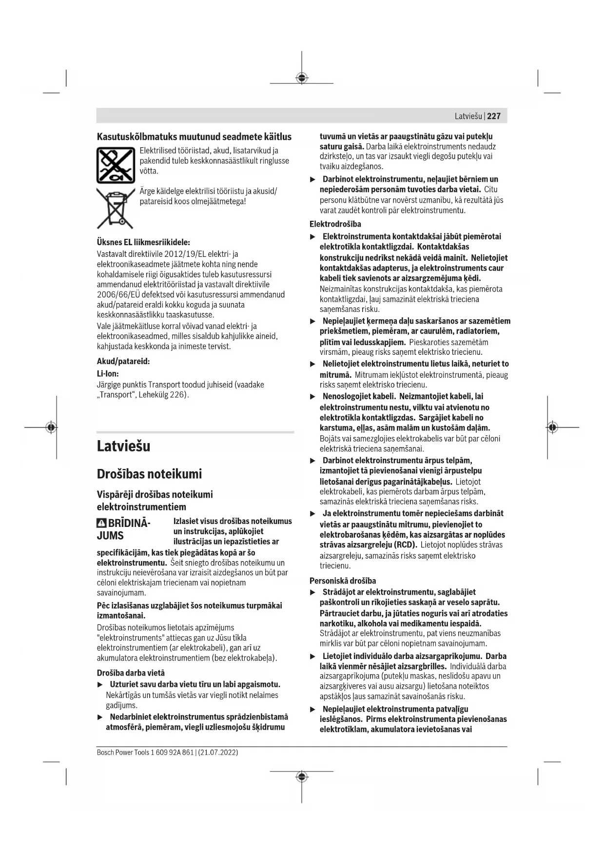 Lietojiet dzirdes aizsarglīdzekļus! 1 609 92A 861 | (21.07.2022) Bosch Power ToolsLatviešu | 231