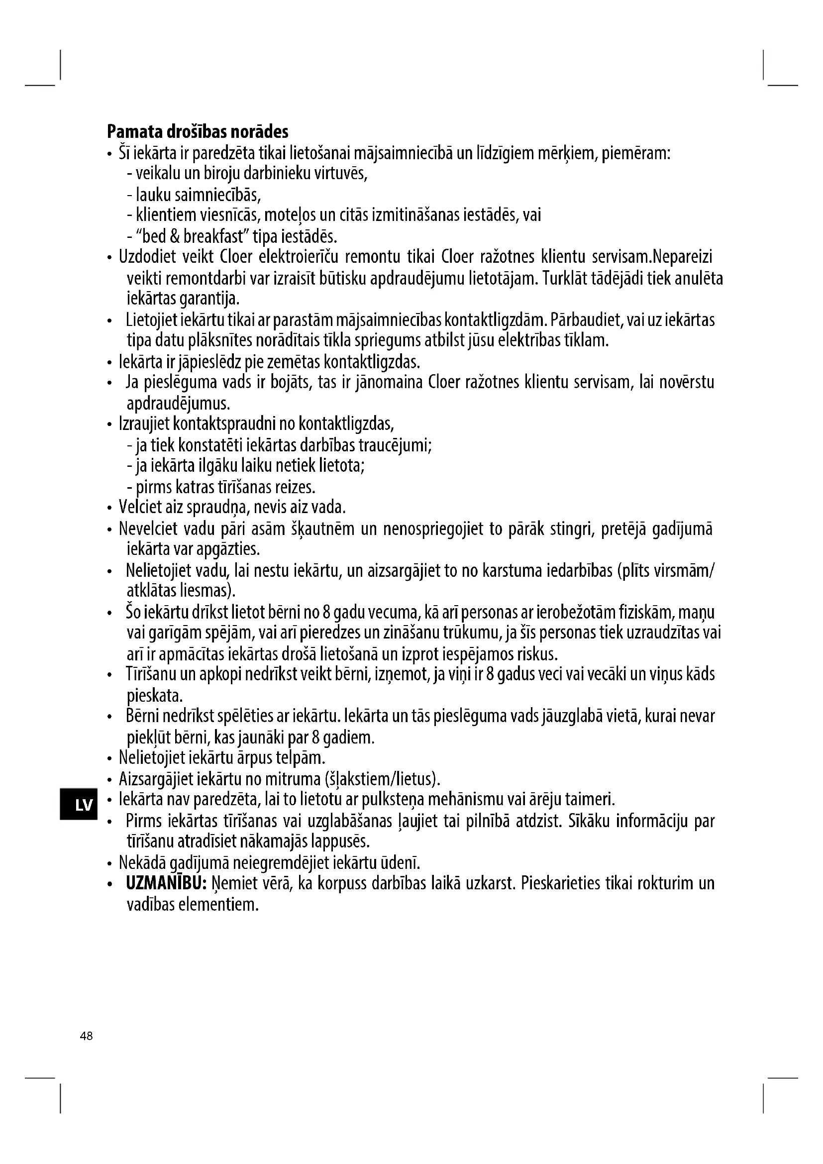 LIETOŠANAS INSTRUKCIJA 1629 Cloer