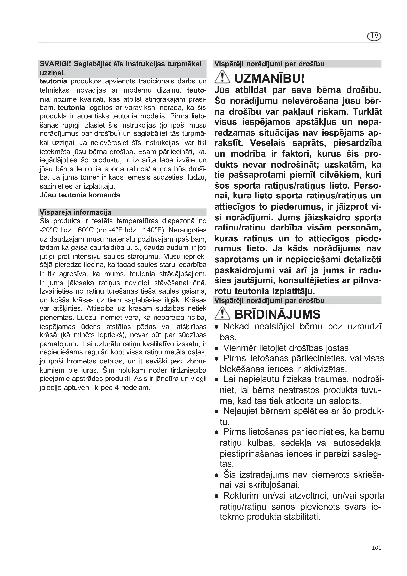 BRIDINAJUMS. Pirms lietošanas parlieci-nieties, vai visas blokešanas ierices ir aktivizetas.