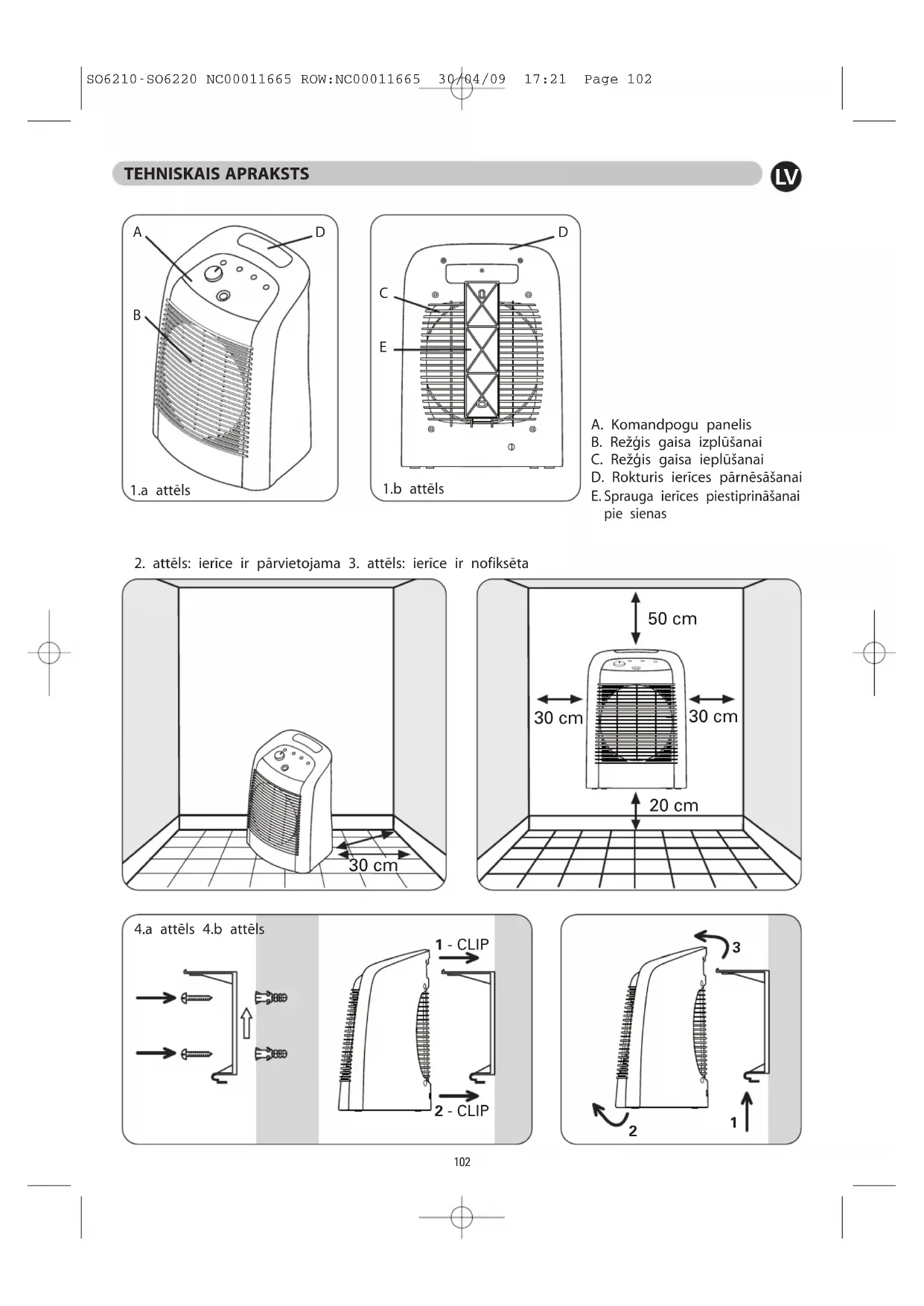 SO6210-SO6220 NC00011665 ROW:NC00011665 30/04/09 17:21 Page 101TEHNISKAIS APRAKSTS A. Komandpogu panelis B. Režģis gaisa izplūšanai C. Režģis gaisa ieplūšanai D. Rokturis ierīces pārnēsāšanai