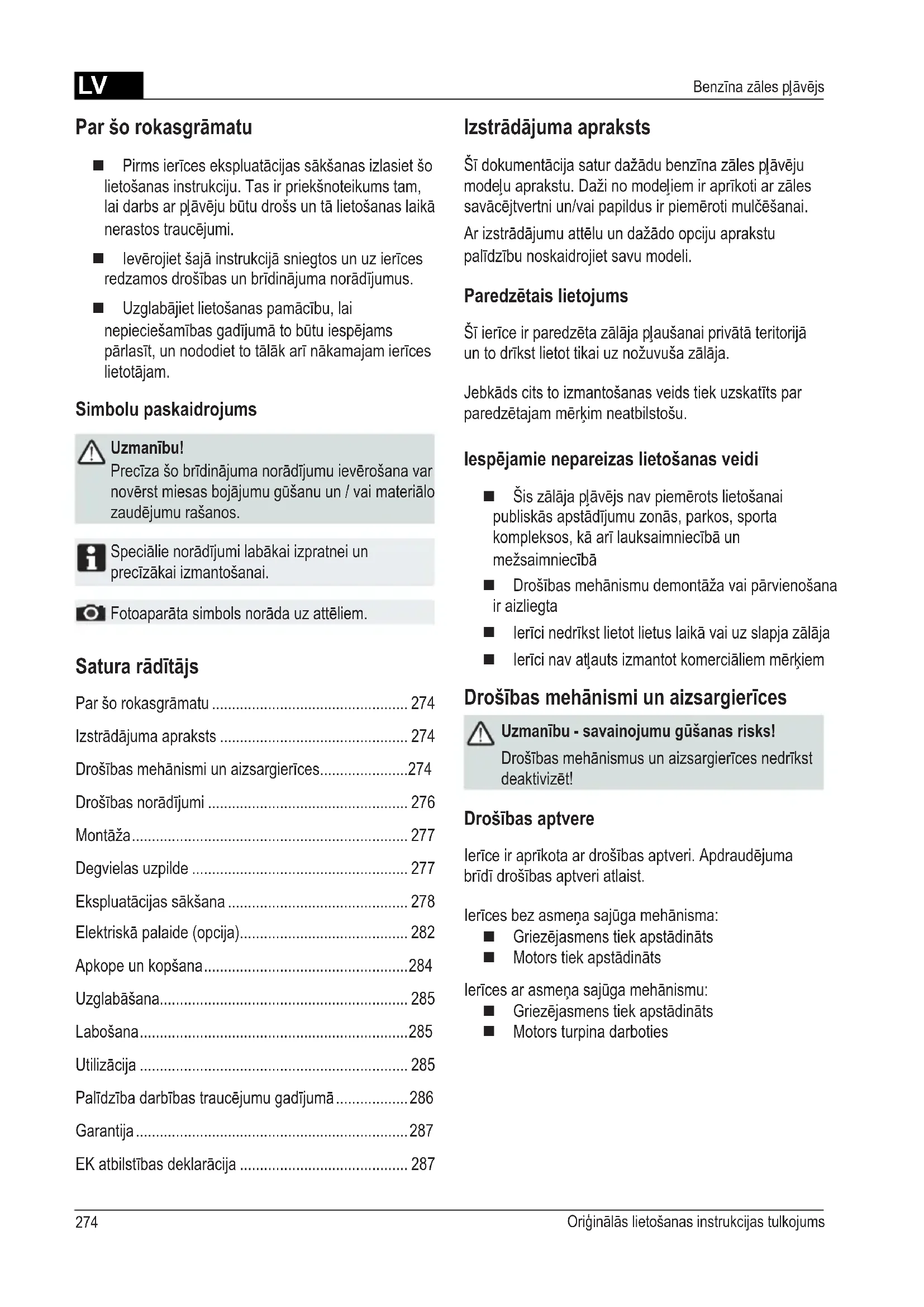 - Benzīna zāles pļāvējs Satura rādītājs Paršorokasgrāmatu p. 274