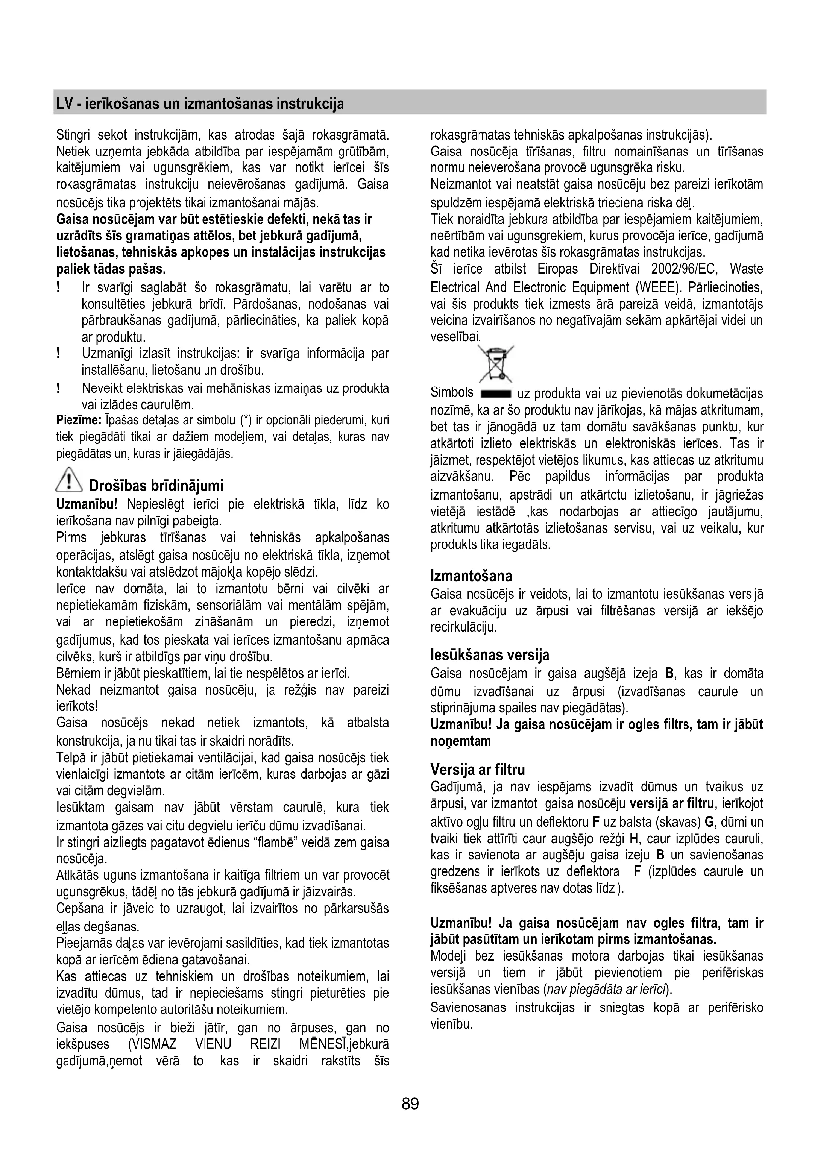Uzmanibu: lerices tirisanas un filtru nomainisanas normuneneieverosana var vest pie ugunsgreka riskiem. Tatad irietecams pietureties pie ieteiktam instrukcijam.