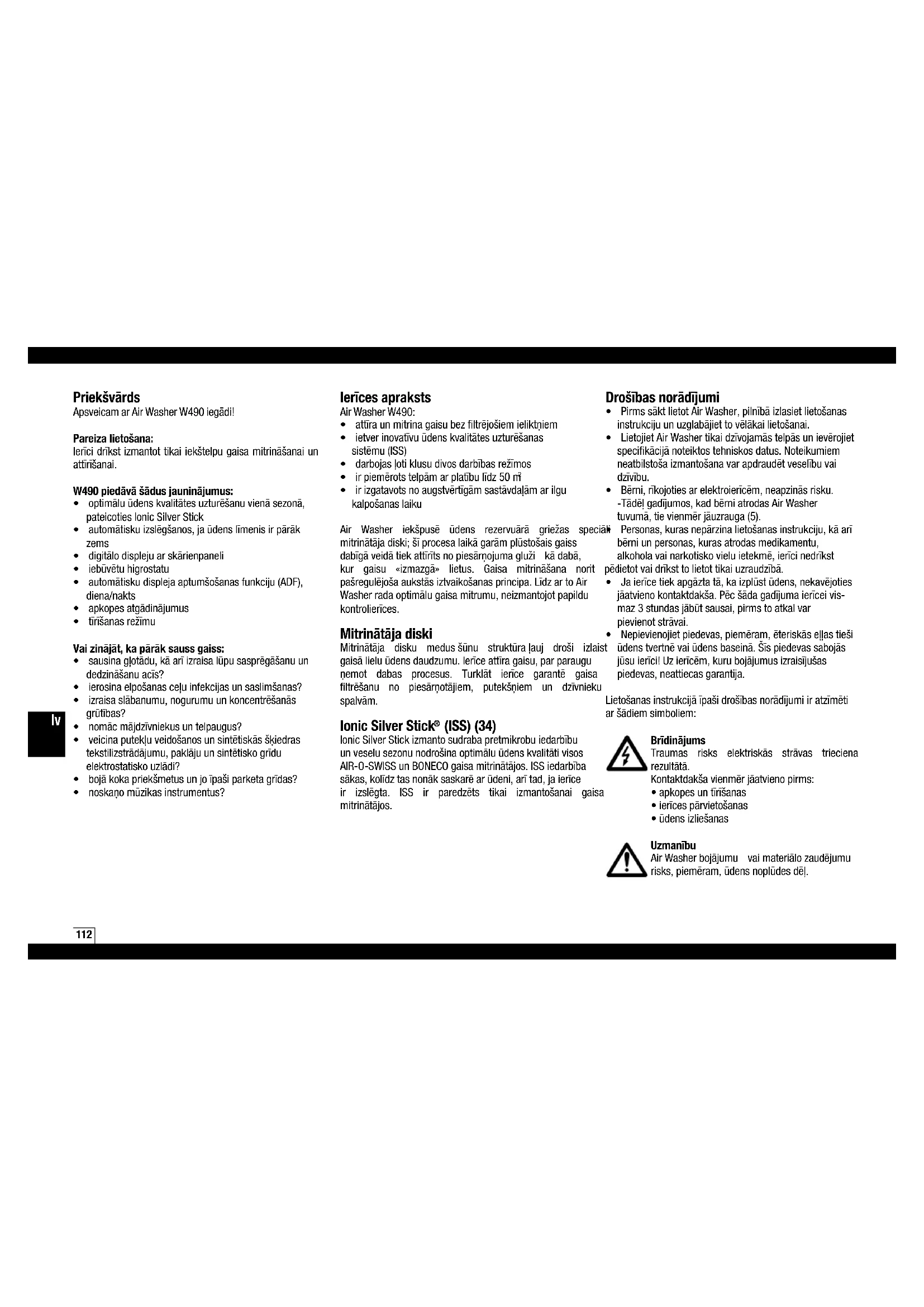 (ISS) (34) lonicSilverStickizmantosudrabapretmikrobuiedarbību unveselusezonunodrošinaoptimāluūdenskvalitātivisos AIR-O-SWISSunBONECOgaisamitrinātājos.ISSiedarbība sākas,kolīdztasnonāksaskarēarūdeni,arītad,jaierīce ir izslēgta. ISS ir paredzēts tikai izmantošanai gaisa mitrinātājos. Drošības norādījumi