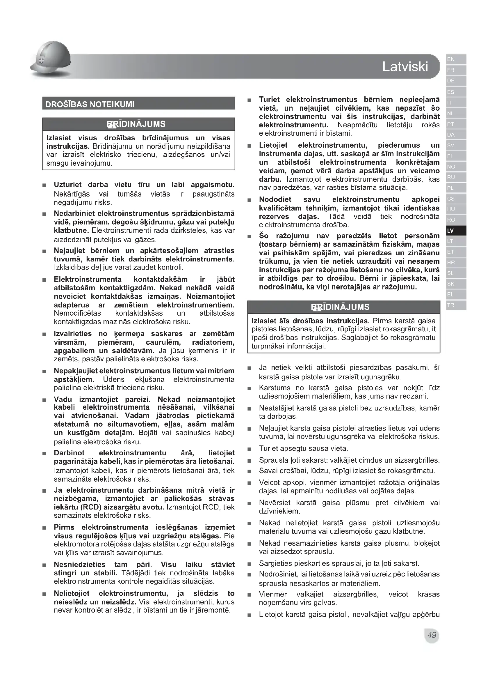 Izlasiet sis drośibas instrukcijas. Pirms karstā gaisa pistoles lietošanas, ludzu, rupigi izlasiet rokasgrāmatu, it ipasi drośibas instrukcijas. Saglabajiet so rokasgrāmatu turpmakai informacijai.