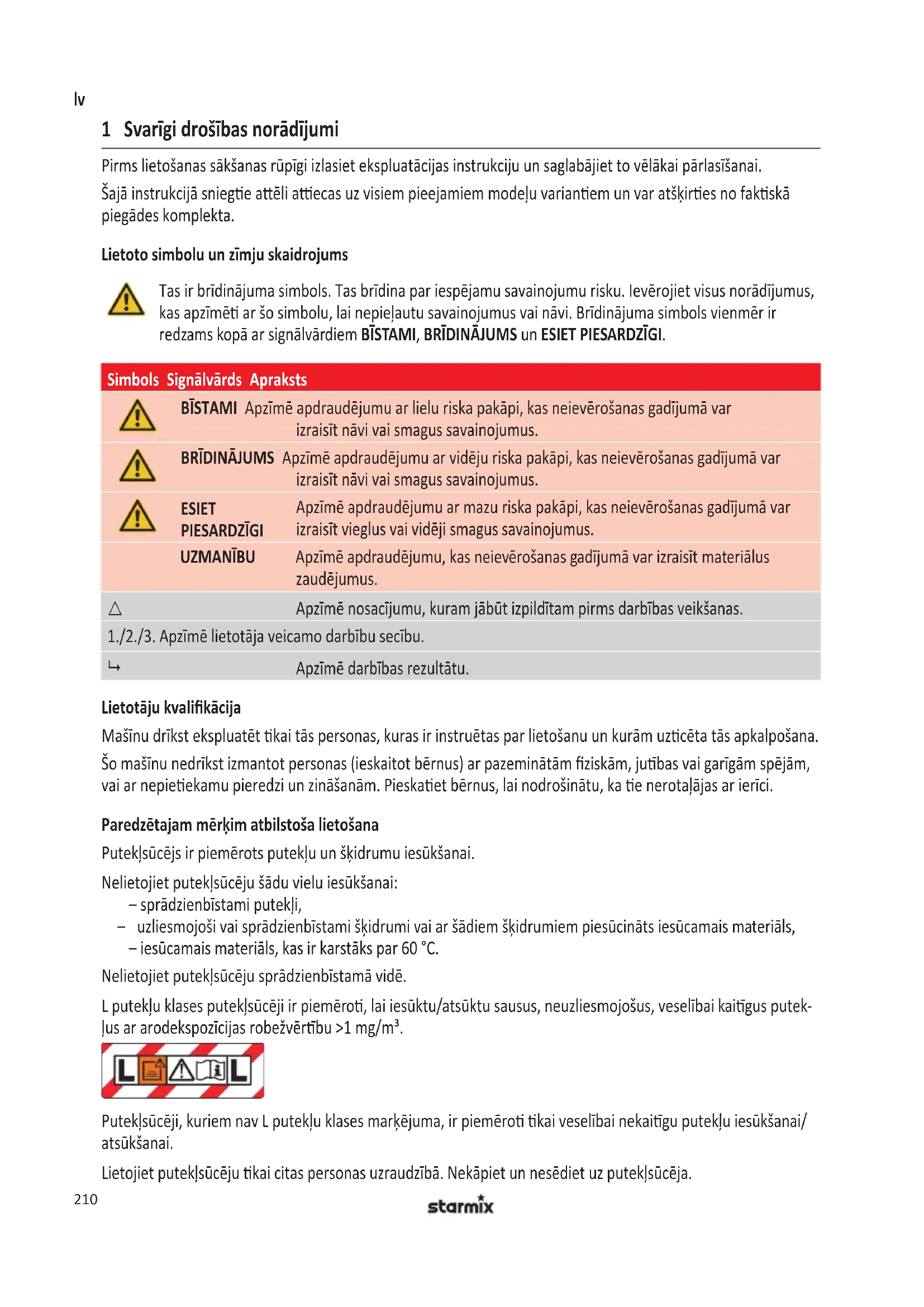 Tas ir bridinajuma symbols. Tas bridina par iespejamu savainojumu risku. leverojiet visus noradijumus, kas apzimeti ar so simbolu, lai nepieautu savainojumus vai navi. Bridinajuma symbols vienmer ir redzams kopar signalvardiem BISTAMI, BRIDINAJUMs un ESIET PIESARDZIGI.
