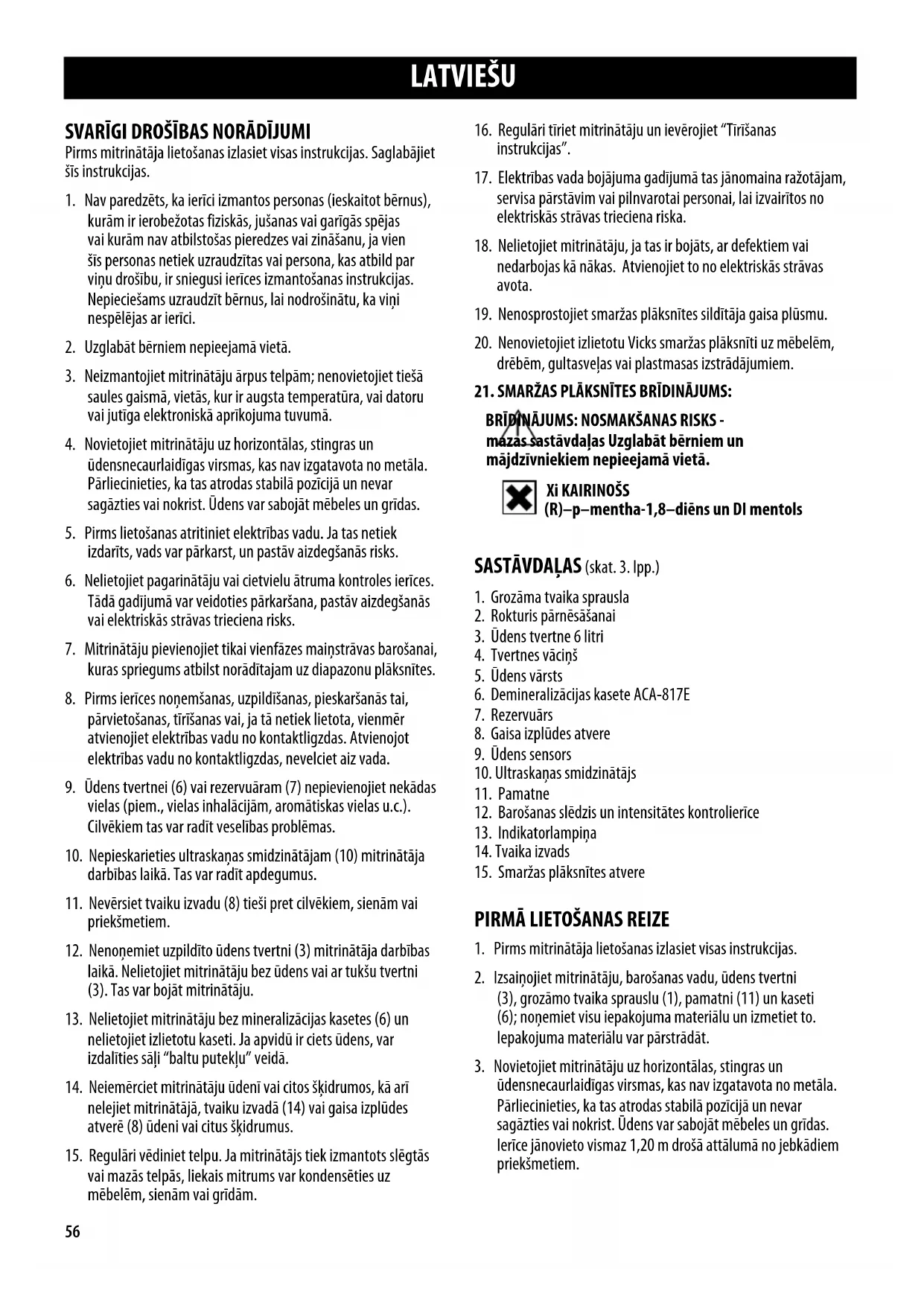 mazas sastāvdaļas Uzglabāt bērniem un mājdzīvniekiem nepieejamā vietā. Xi KAIRINOŠS (R)–p–mentha-1,8–diēns un DI mentols SASTĀVDAĻAS (skat. 3. lpp.)