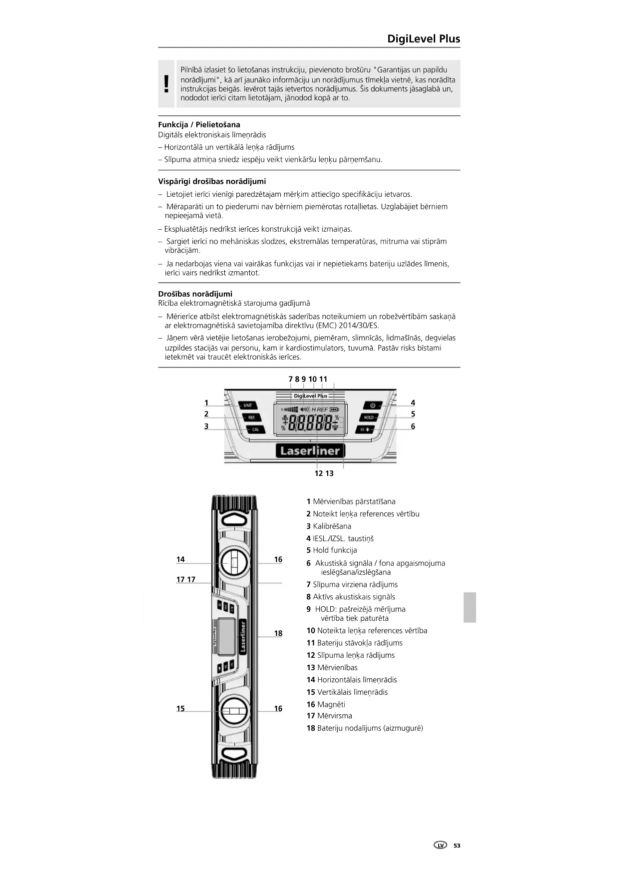 LIETOŠANAS INSTRUKCIJA DigiLevel Plus Laserliner