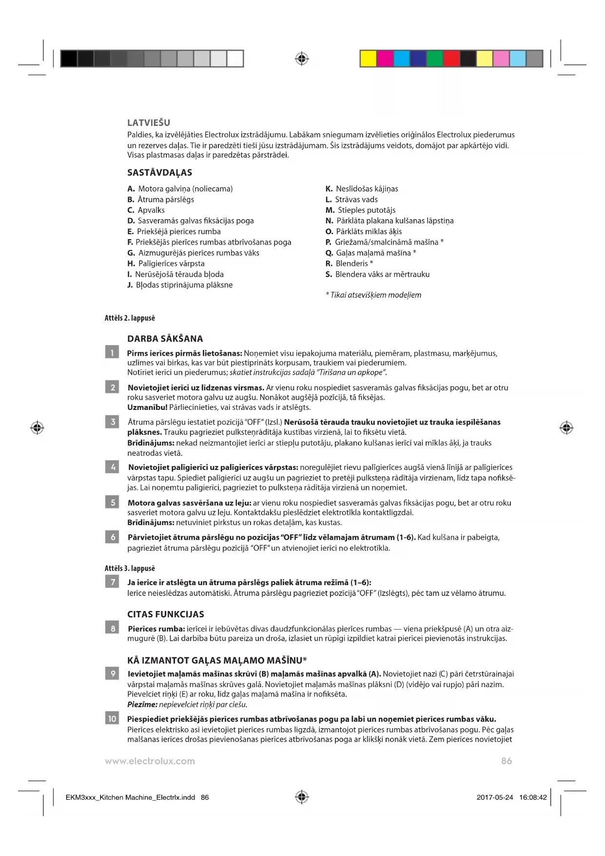 - BRĪDINĀJUMS! Lai izvairītos no bīstamām situācijām, kas rodas no nejaušas termiskās EKM3xxx_Kitchen Machine_Electrlx.indd 88 2017-05-24 16:08:4289 www.electrolux.com