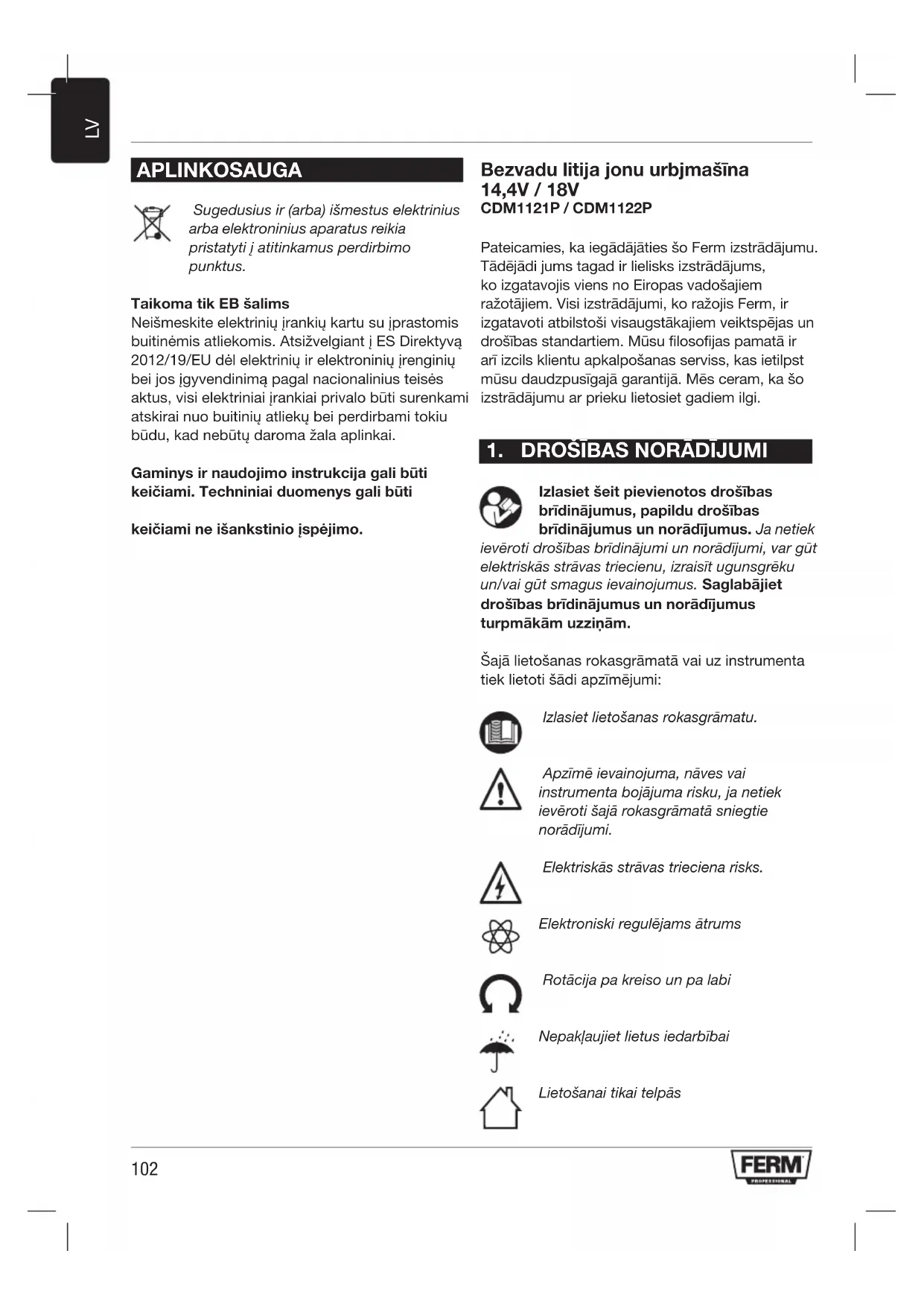 LIETOŠANAS INSTRUKCIJA CDM1122P Ferm