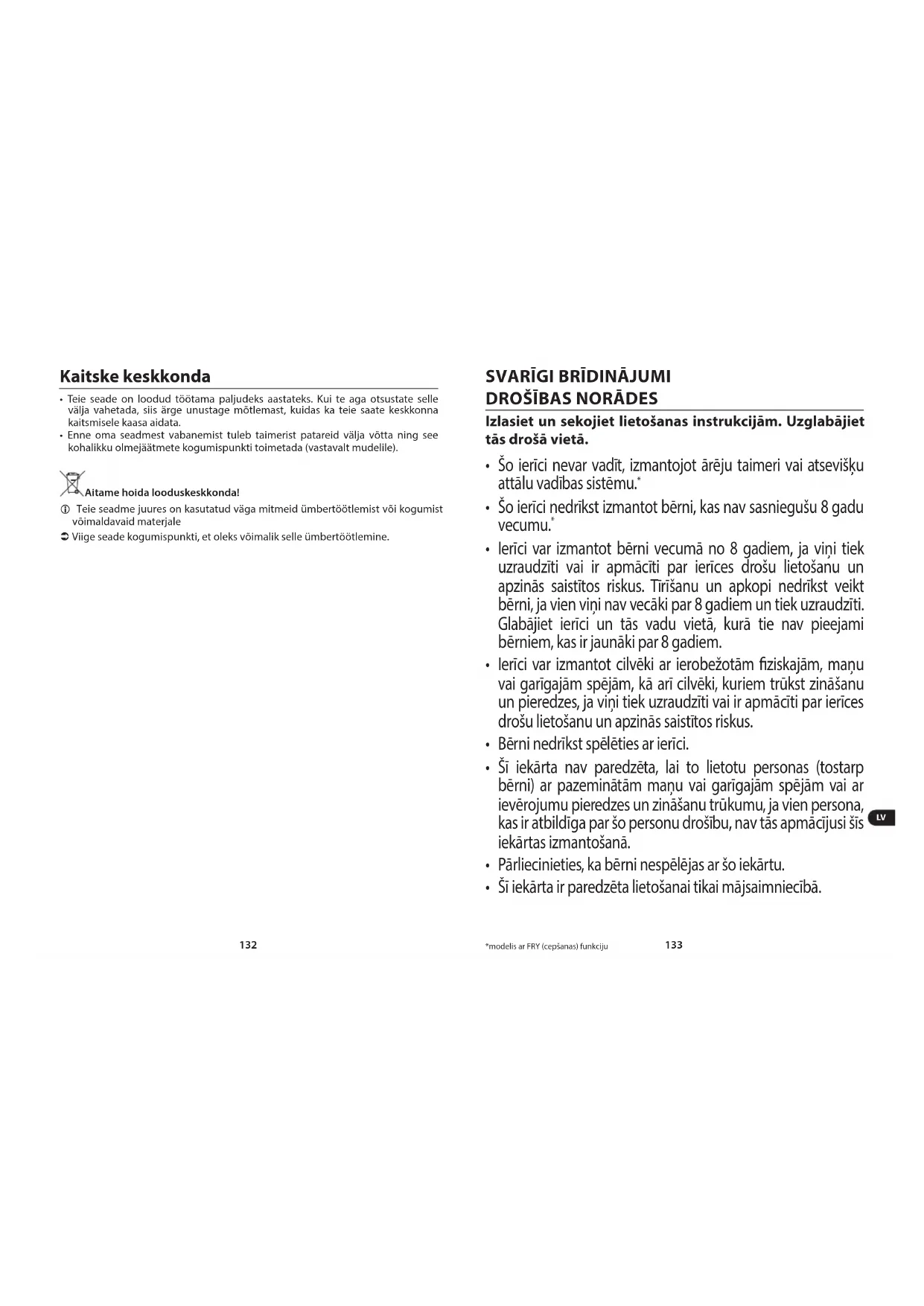 - Šī iekārta ir paredzēta lietošanai tikai mājsaimniecībā. *modelis ar FRY (cepšanas) funkciju Kaitske keskkonda