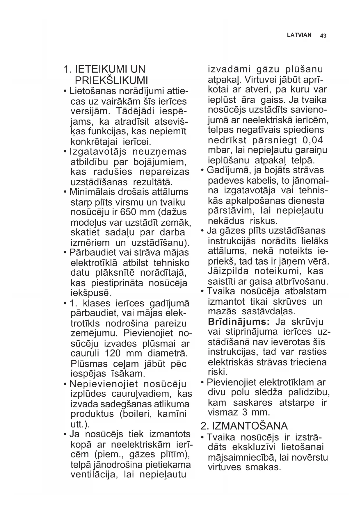 - Ja gāzes plīts uzstādīšanas instrukcijās norādīts lielāks attālums, nekā noteikts ie- priekš, tad tas ir jāņem vērā. Jāizpilda noteikumi, kas saistīti ar gaisa atbrīvošanu.