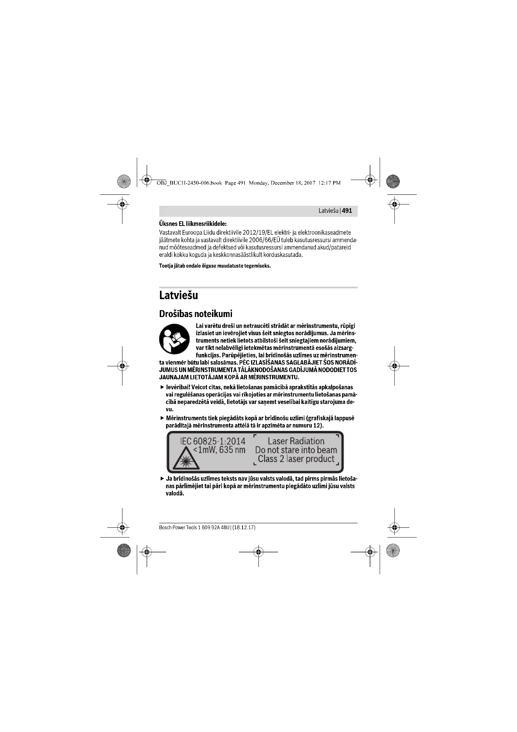 OBJ_BUCH-2450-006.book Page 493 Monday, December 18, 2017 12:17 PM494 | Latviešu 1 609 92A 48U | (18.12.17) Bosch Power Tools Automātiskā izslēgšanās pēc apt. –lāzeram –mērinstrumentam (ja nenotiek mērījumi) 20 s 5min.