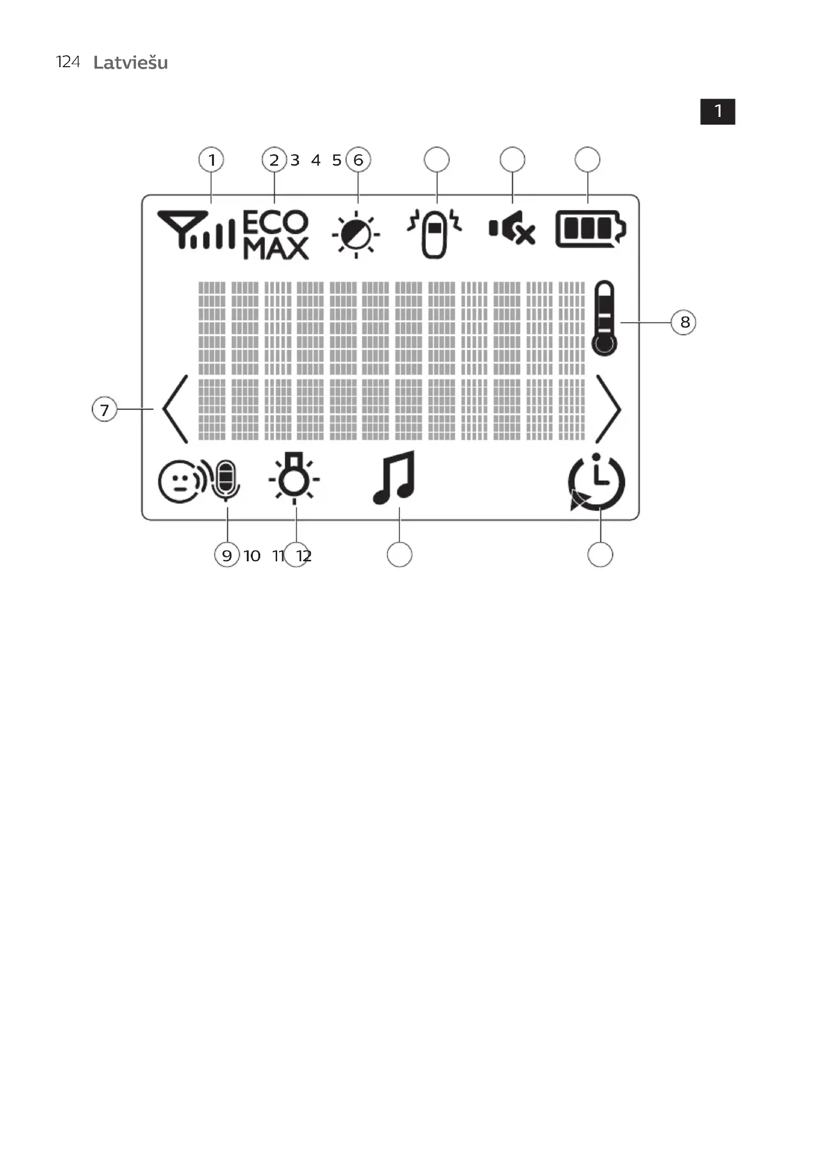 - Režimā Eco Max netiek sanemts atbildes signals, ja vecaku ience ir arpus mazuła iñces darbības diapazona. Savienojumu varat pārbaudit, nospiéžot jebkuru vecaku iñces pogu.