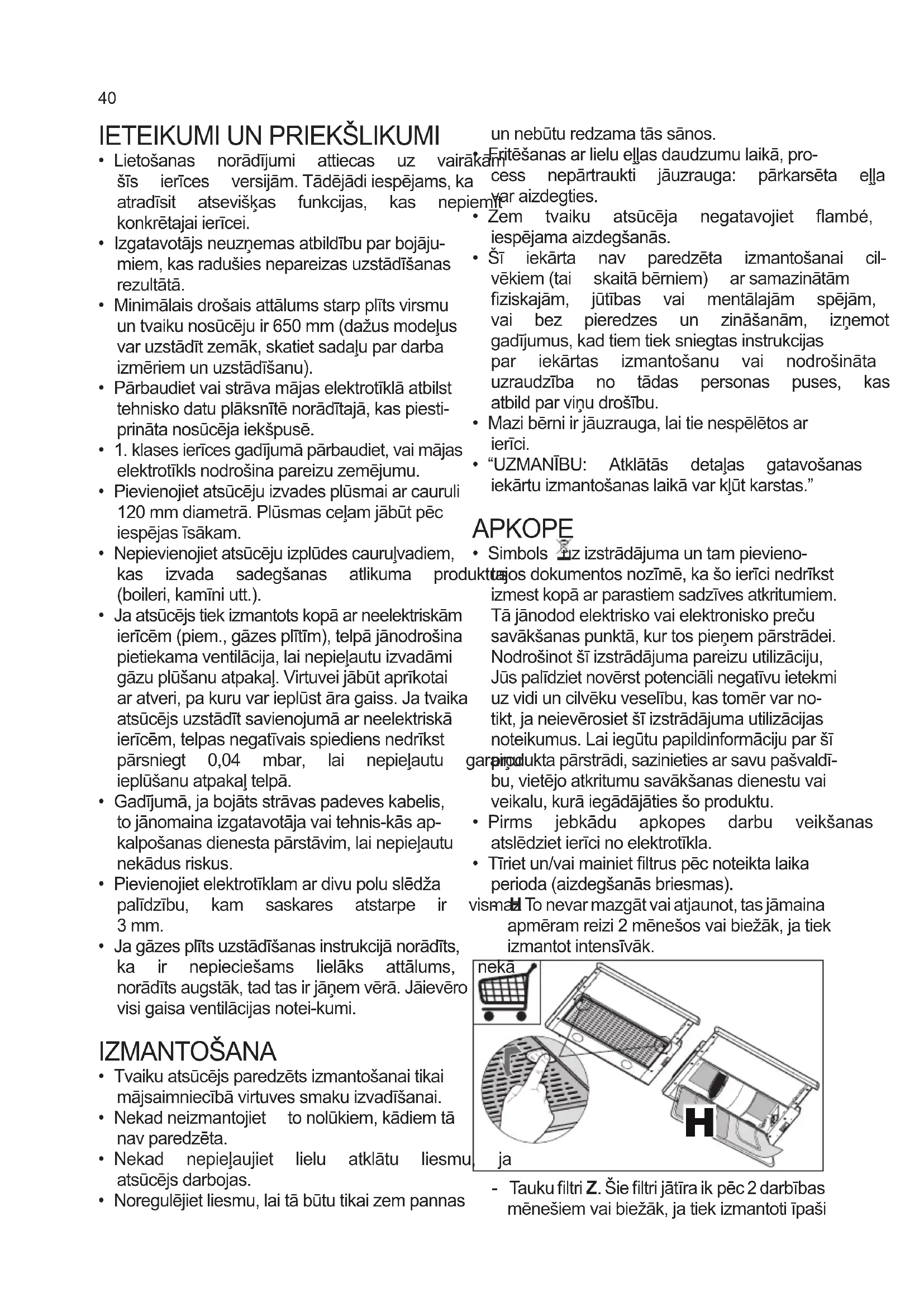 - “UZMANĪBU: Atklātās detaļas gatavošanas iekārtuizmantošanaslaikāvarkļūtkarstas.” APKOPE