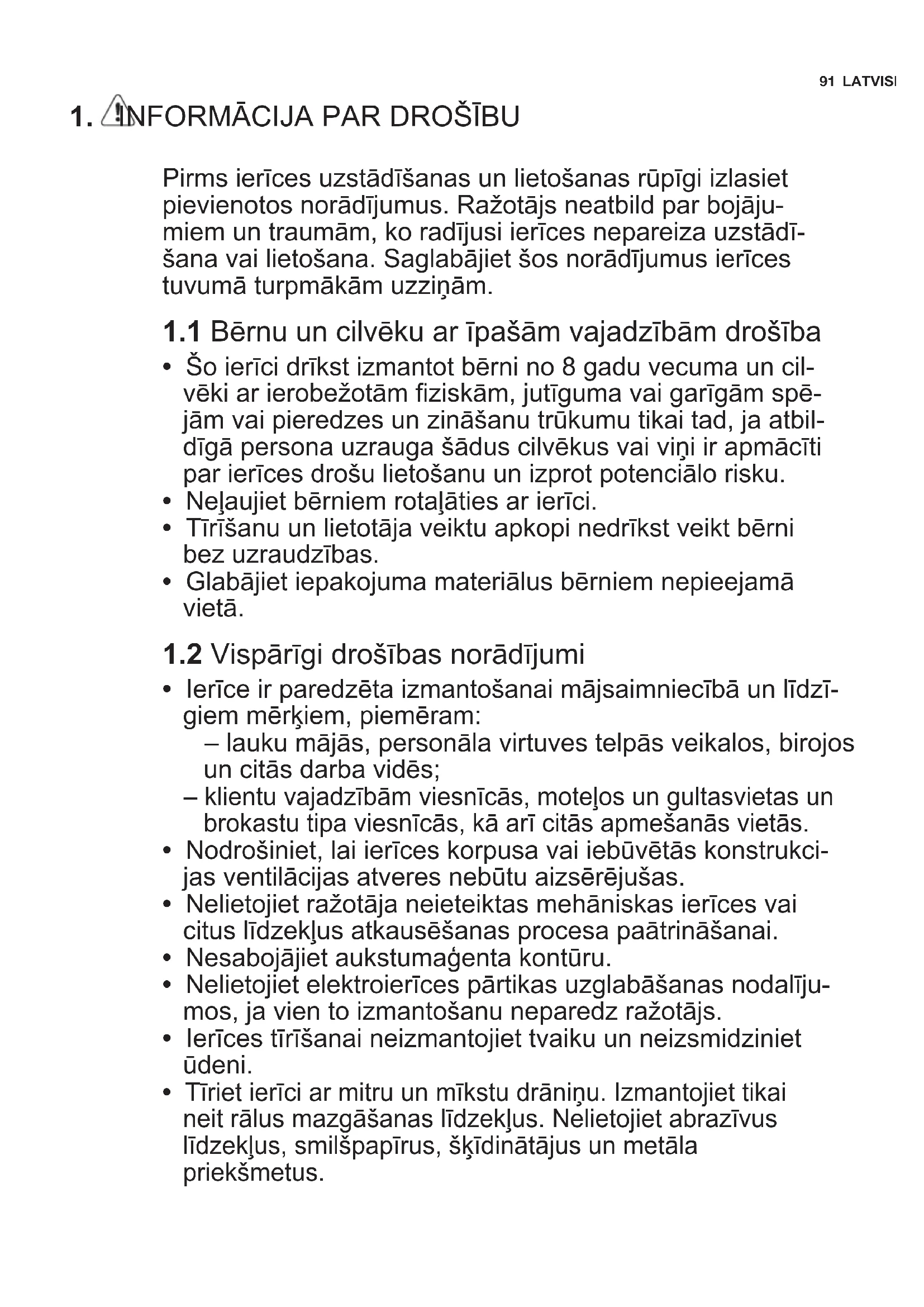 1.2 Vispārīgi drošības norādījumi