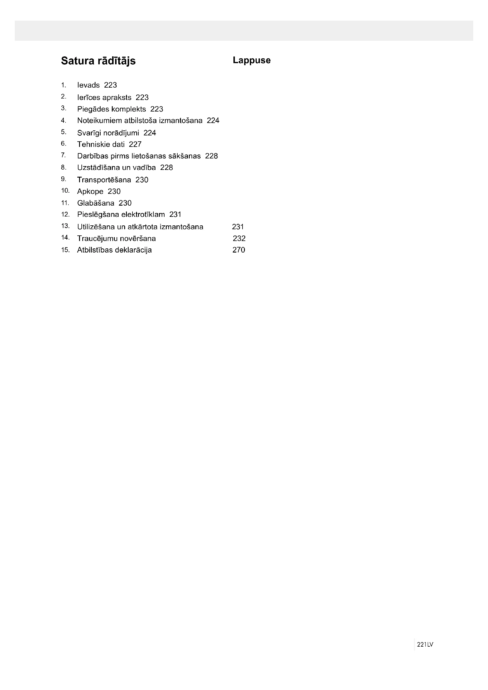 Svarīgi norādījumi 224