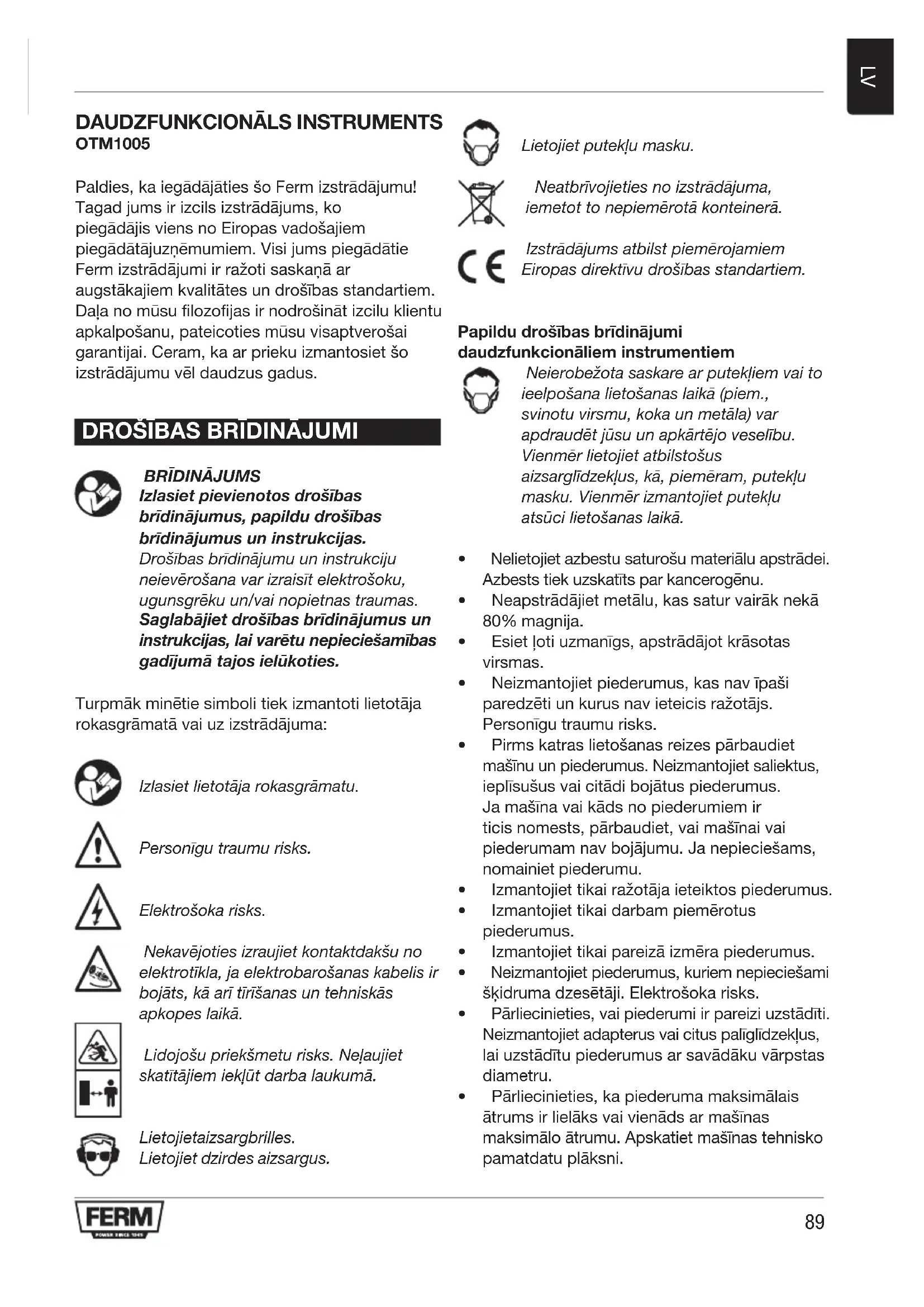 OTM1005 - Daudzfunkcionālie rīki Ferm - Bezmaksas lietošanas instrukcija