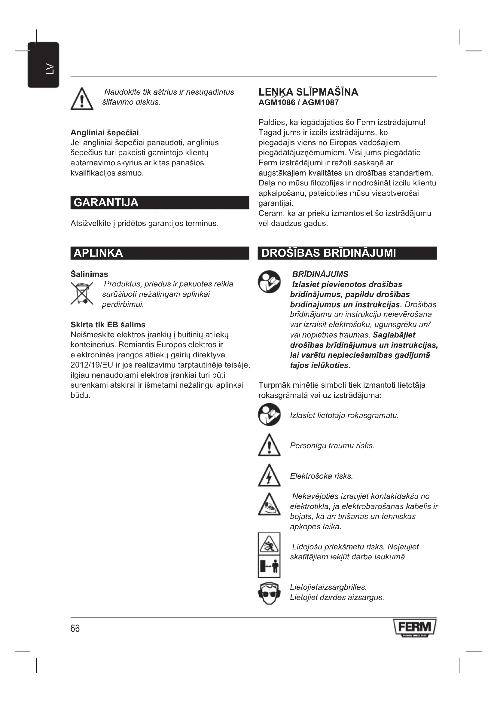LIETOŠANAS INSTRUKCIJA AGM1086 Ferm