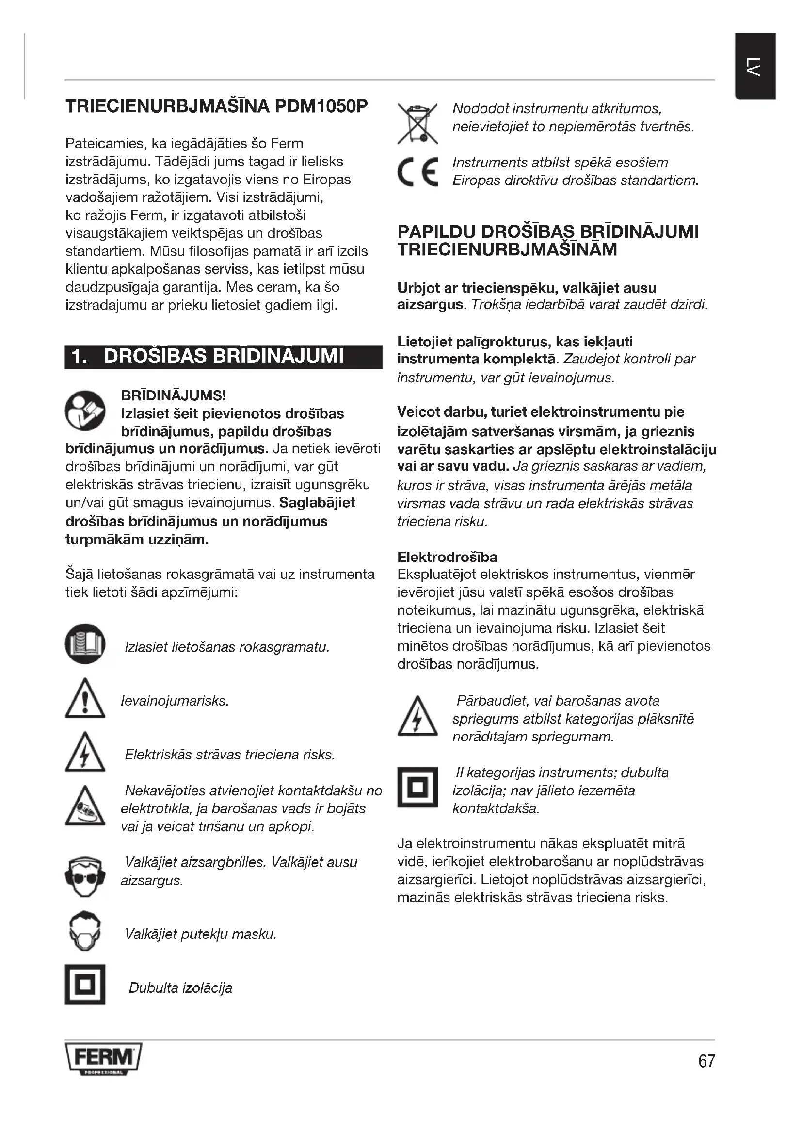 LIETOŠANAS INSTRUKCIJA PDM1050P Ferm