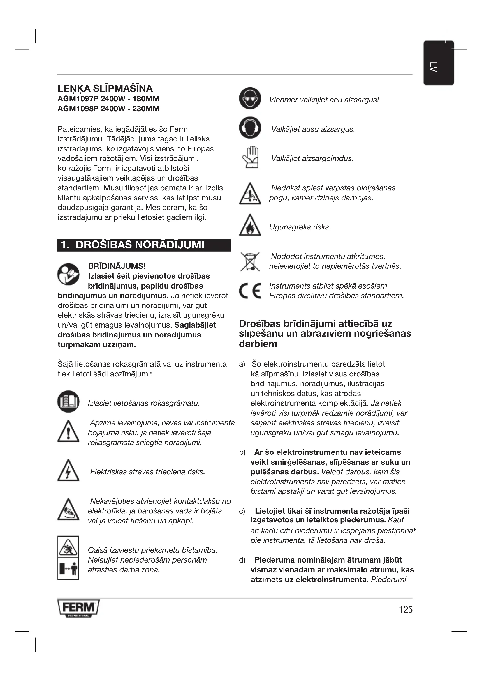 AGM1098P - Elektriskais leņķa slīpmašīna Ferm - Bezmaksas lietošanas instrukcija