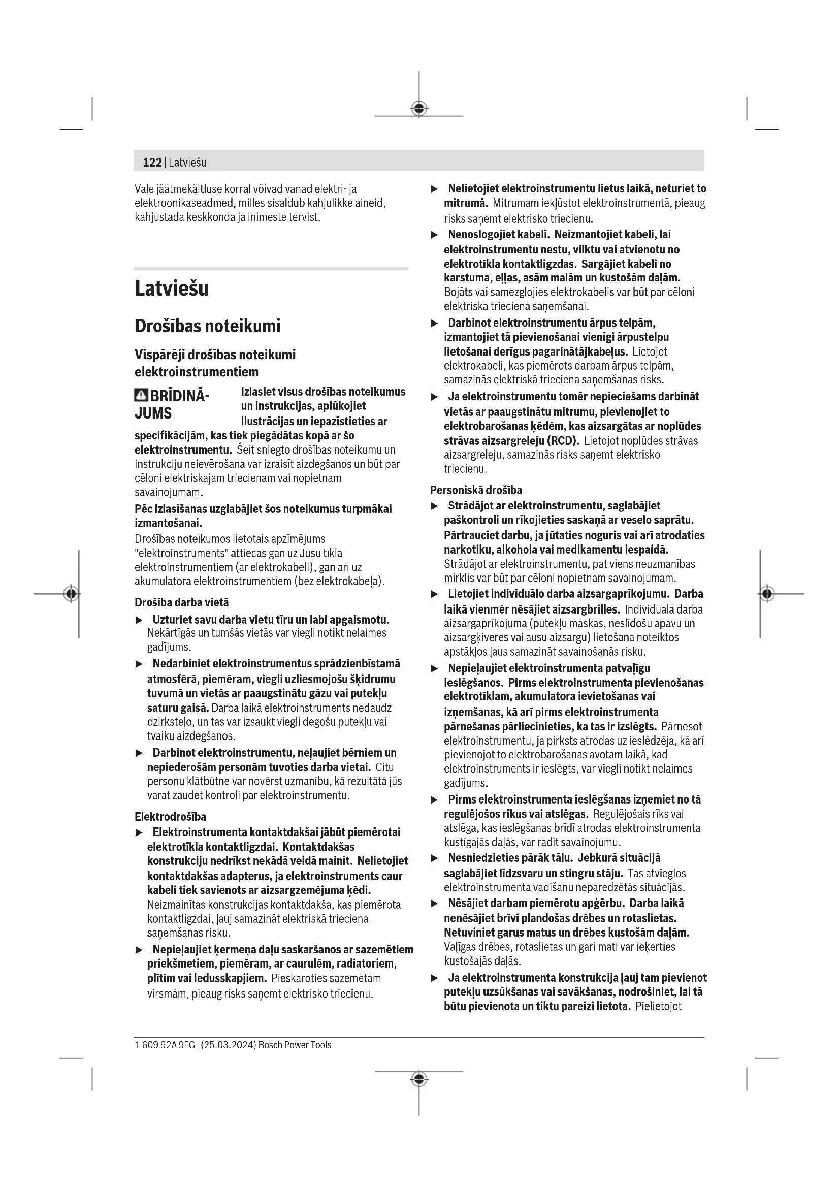 kg 5,8 Aizsardzības klase /II A) Svars bez elektrotīkla pieslēguma kabeļa un elektrotīkla kontaktdakšas Parametri ir sniegti nominālajam spriegumam [U] 230 V. Elektroinstrumentiem, kas paredzēti zemākam spriegumam vai ir modificēti atbilstoši nacionālajiem standartiem, šie parametri var atšķirties. Vērtības var atšķirties atkarībā no konkrētā izstrādājuma un izmantošanas vai apkārtējās vides apstākļiem. Plašāku informāciju skatiet vietnē www.bosch-professional.com/wac. Informācija par troksni un vibrāciju Trokšņa emisijas vērtības ir noteiktas atbilstoši standartam ENIEC62841-2-6. Pēc A raksturlīknes izsvērtās elektroinstrumenta radītā trokšņa tipiskās vērtības ir šādas: skaņas spiediena līmenis 92dB(A); skaņas jaudas līmenis 100dB(A). Mērījuma kļūda K= 3dB. Lietojiet ierīces dzirdes orgānu aizsardzībai! Vibrāciju kopējā vērtība a