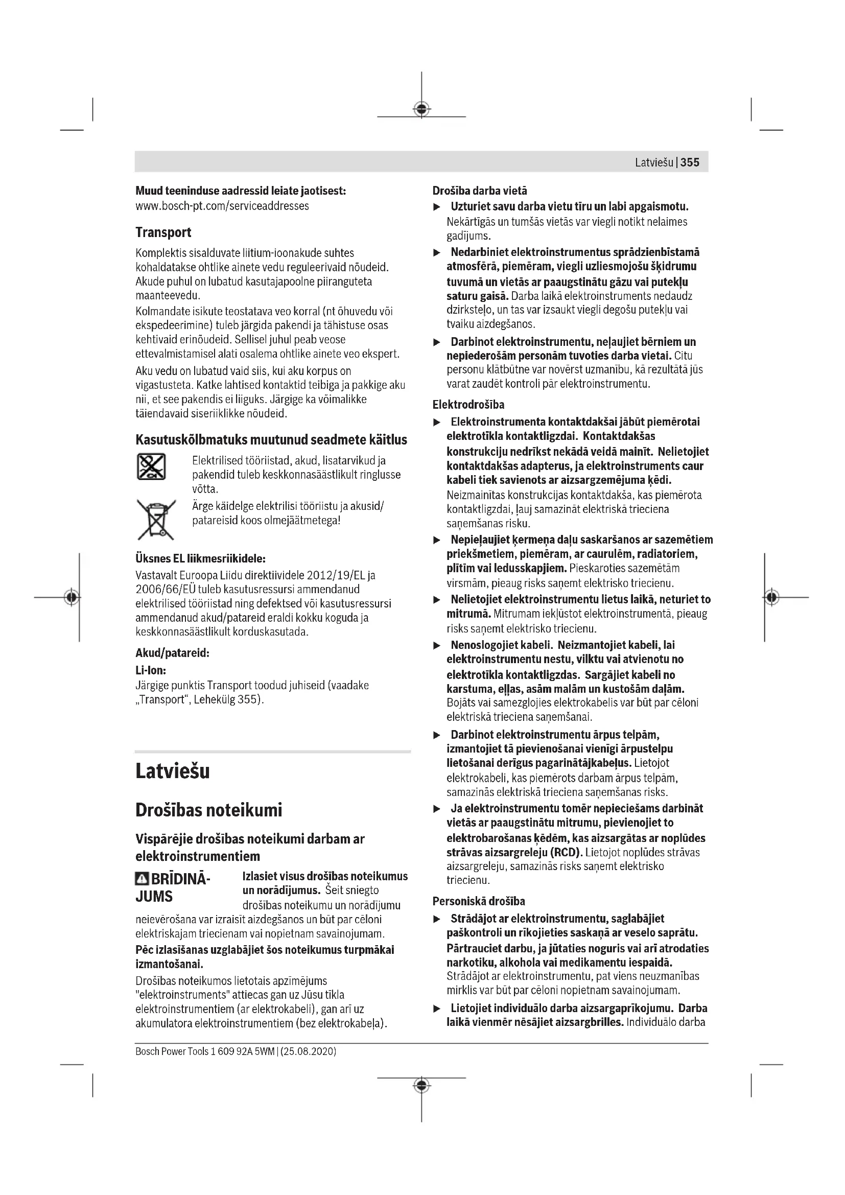 1 609 92A 5WM | (25.08.2020) Bosch Power ToolsLatviešu | 361 Leņķa slīpmašīna GWS 18V-10 PC GWS 18V-10 PSC Signālu intervāls s 8 8 Maksimālā signāla sniedzamība