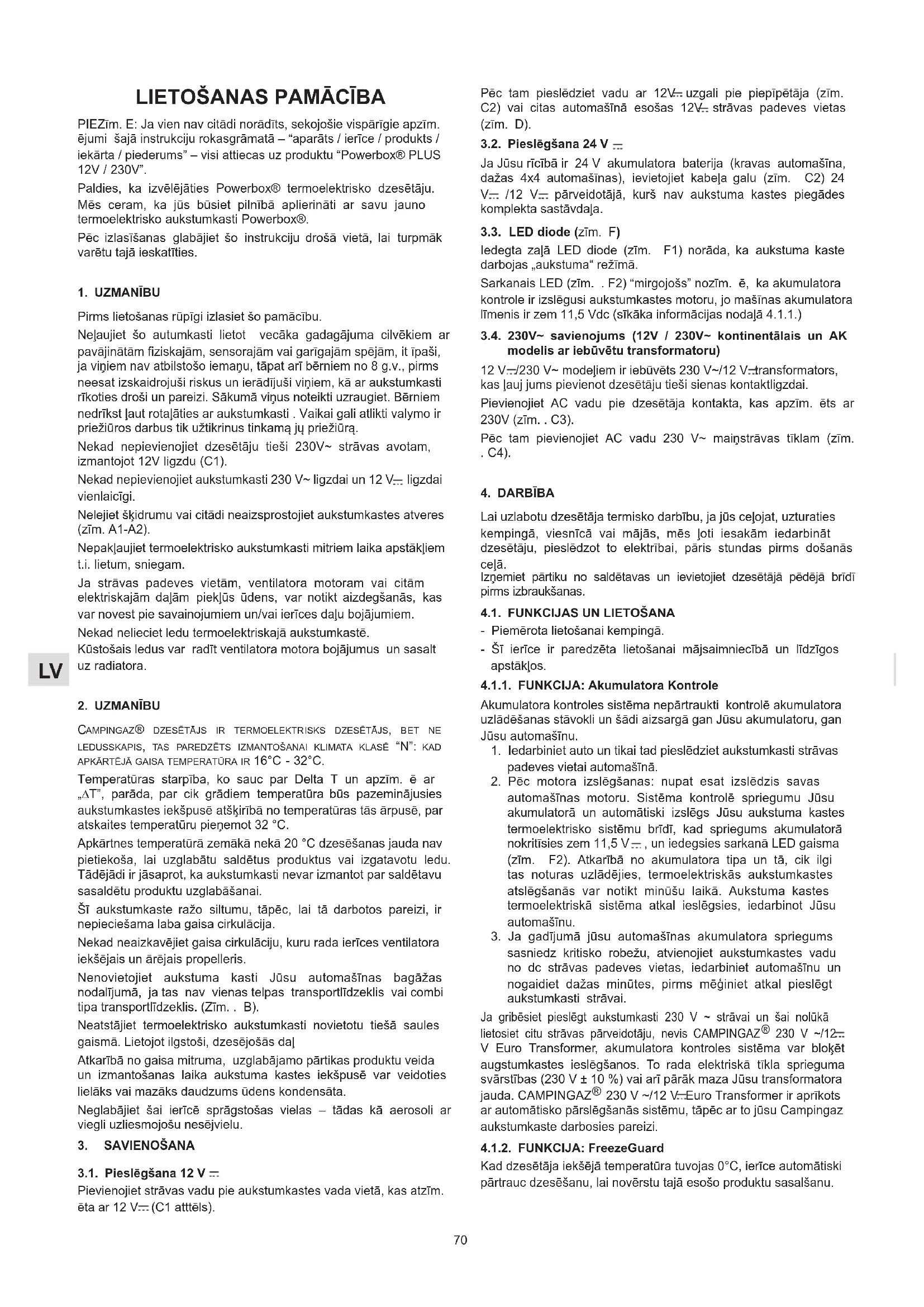 LIETOŠANAS INSTRUKCIJA PowerBox Plus 24L 12V230V CAMPINGAZ