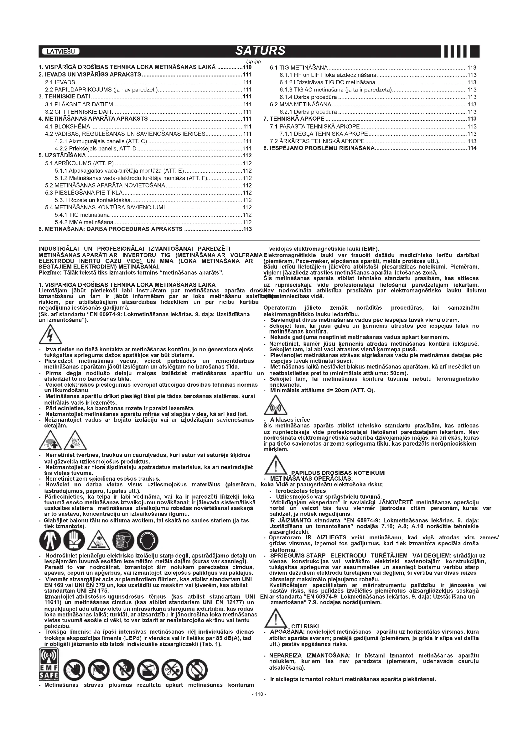 6.1.3 TIG AC metināšana (ja tā ir paredzēta) ...............................................113