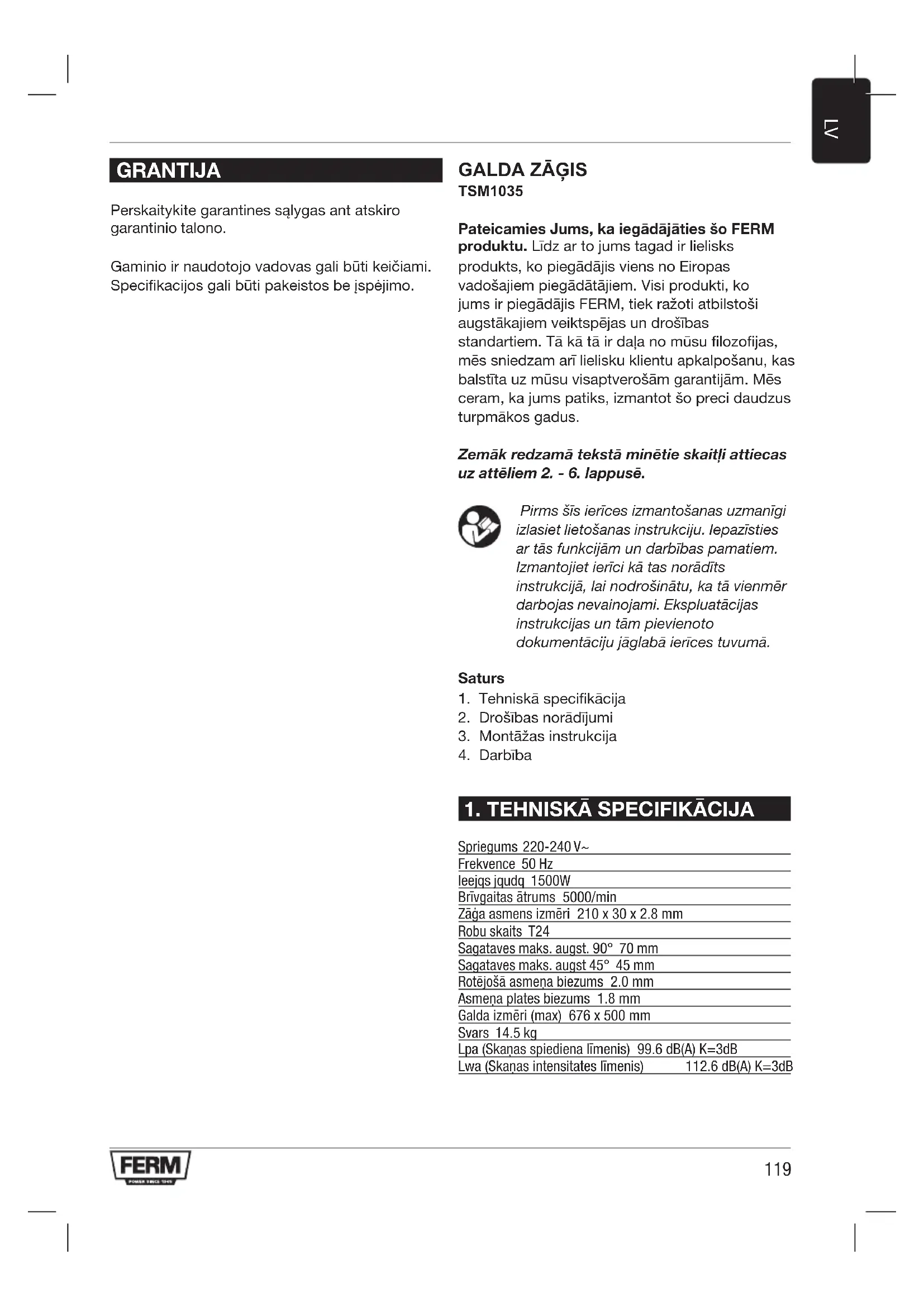 TSM1035 - Zāģis Ferm - Bezmaksas lietošanas instrukcija