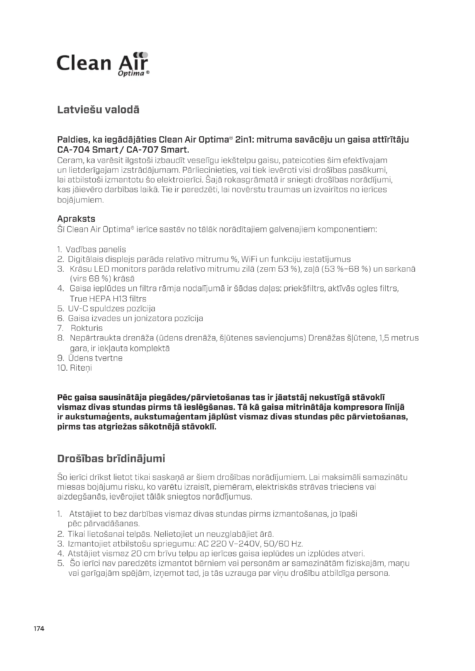LIETOŠANAS INSTRUKCIJA CA707 Smart Clean Air Optima