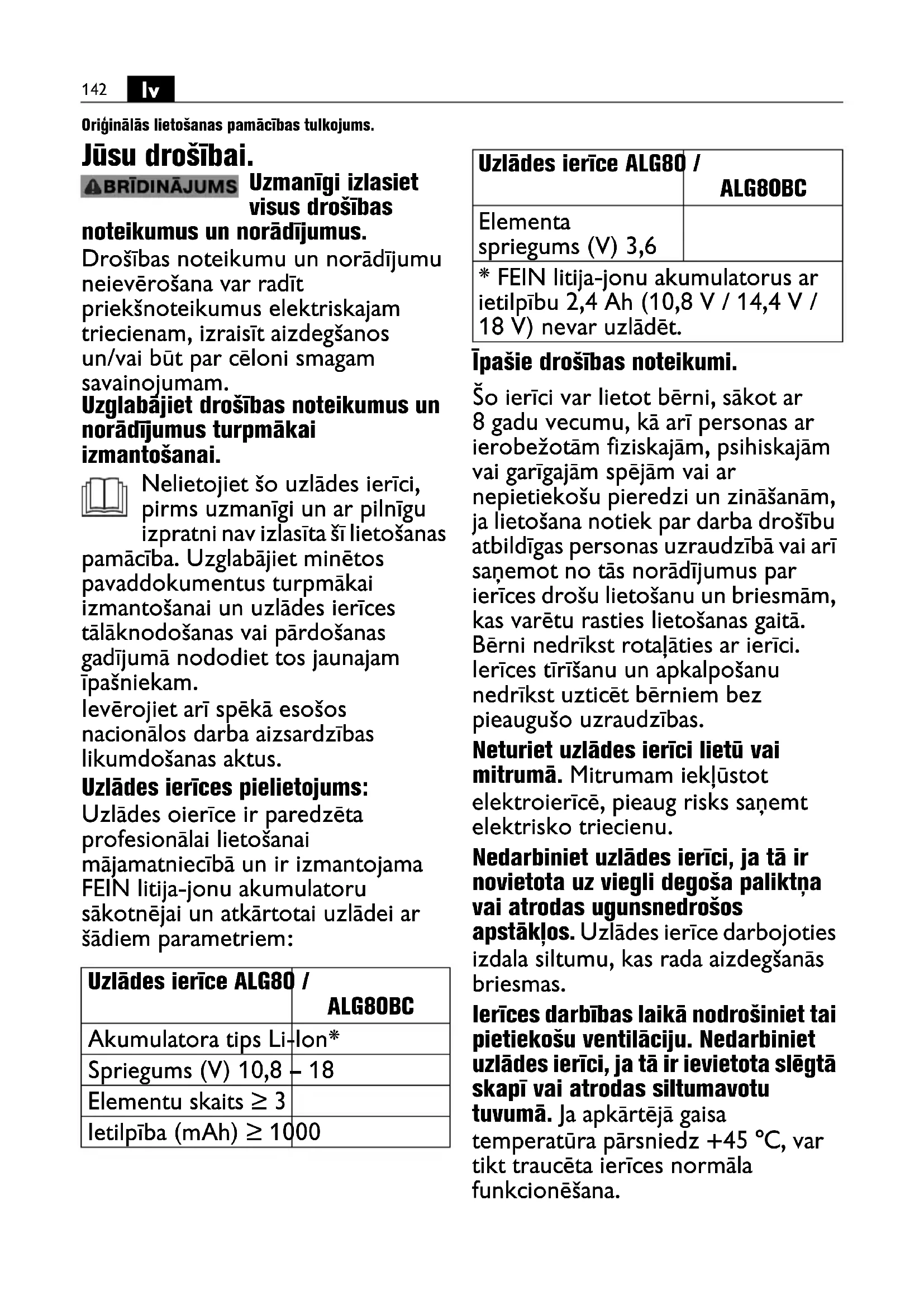 LIETOŠANAS INSTRUKCIJA ALG 80 BC Fein