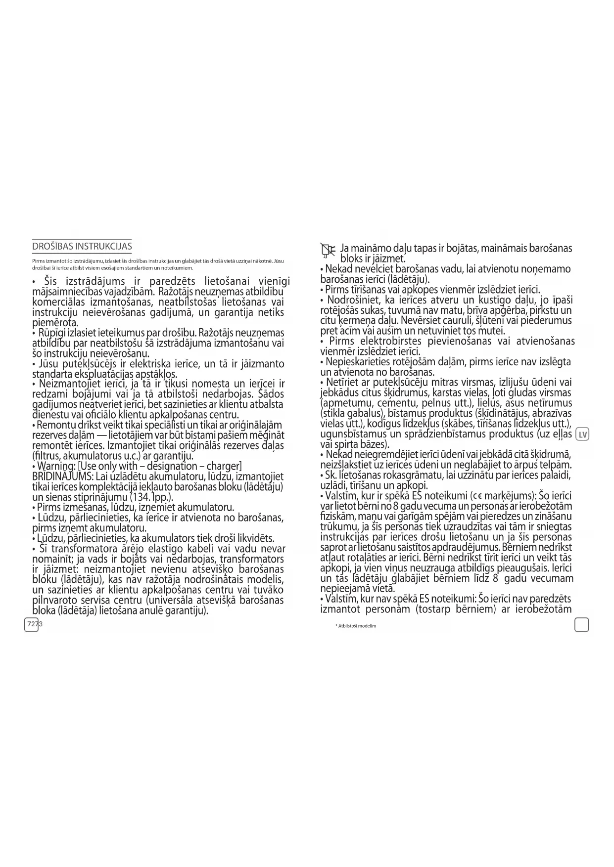 - Rūpīgi izlasiet ieteikumus par drošību. Ražotājs neuzņemas atbildību par neatbilstošu šā izstrādājuma izmantošanu vai šo instrukciju neievērošanu.