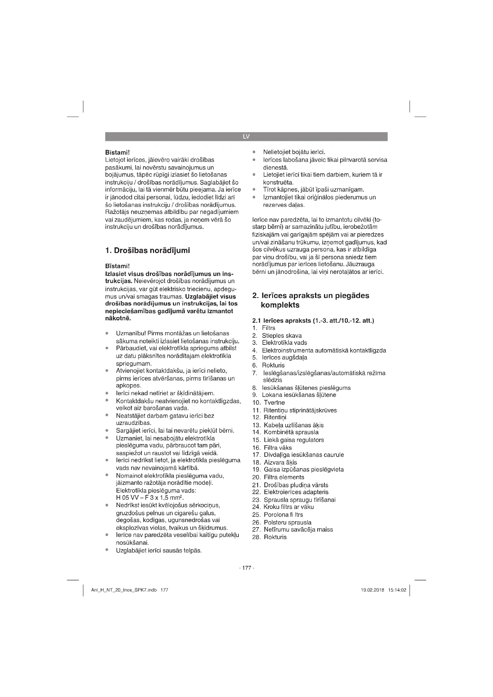 pirkuma dokumentu vai citus jaunas ierīces pirkuma pierādījumus. Ierīcēm, kas tiek nosūtītas bez atbilstīgiem pierādījumiem vai datu plāksnītes, netiek piemērotas tiesības uz garantiju, jo nav iespējama klasifi cēšana. Ja ierīces defekts ir iekļauts mūsu garantijas pakalpojumos, jūs nekavējoties saņemsiet salabotu vai jaunu ierīci. Atgādinām, ka attiecībā uz dilstošajām, patēriņa un brāķētajām detaļām saskaņā ar šajā lietošanas instrukcijā minēto informāciju par apkalpošanu ir spēkā garantijas ierobežojumi. Anl_H_NT_20_Inox_SPK7.indb 183Anl_H_NT_20_Inox_SPK7.indb 183 19.02.2018 15:14:0219.02.2018 15:14:02LT
