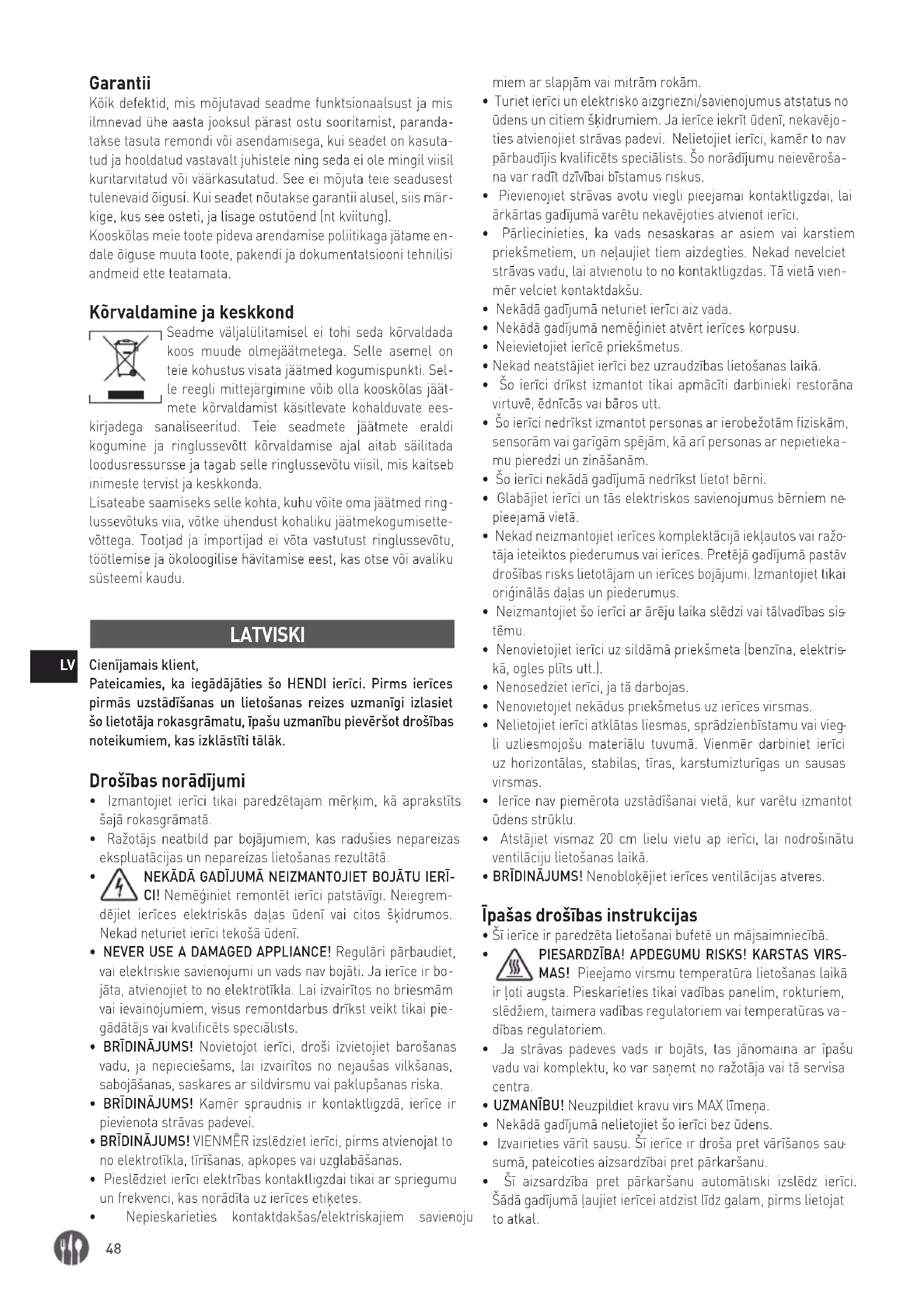 - Saglabājiet lietotāja rokasgrāmatu turpmākām uzziņām. ŅEMIET VĒRĀ! Ražošanas pārpalikumu dēļ ierīce pirmajās lietošanas reizēs var radīt vieglu smaku. Tas ir normāli un ne