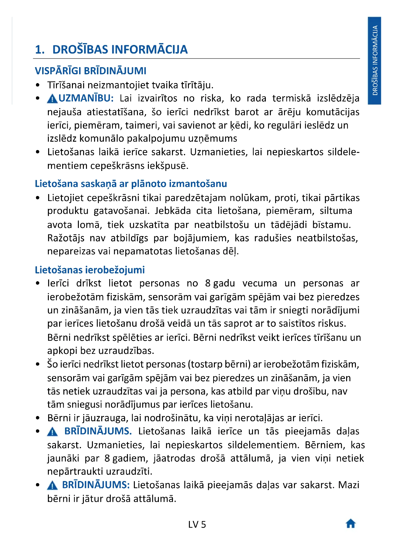 - BRĪDINĀJUMS: Lietošanas laikā pieejamās daļas var sakarst. Mazi bērni ir jātur drošā attālumā.LV 6