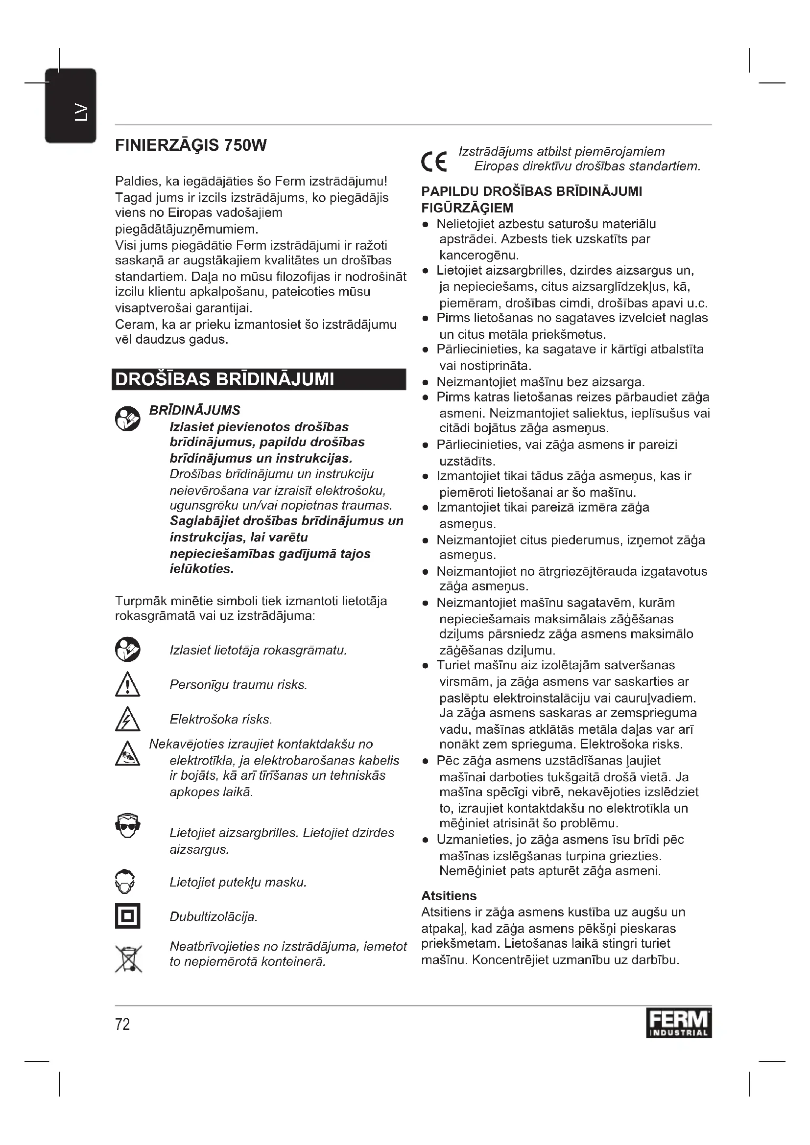 Lejupielādējiet instrukcijas savam Zāģis PDF formātā bez maksas! Atrodiet savu rokasgrāmatu JSM1025P - Ferm un atgūstiet kontroli pār savu elektronisko ierīci. Šajā lapā ir publicēti visi dokumenti, kas nepieciešami jūsu ierīces lietošanai. JSM1025P zīmola Ferm.