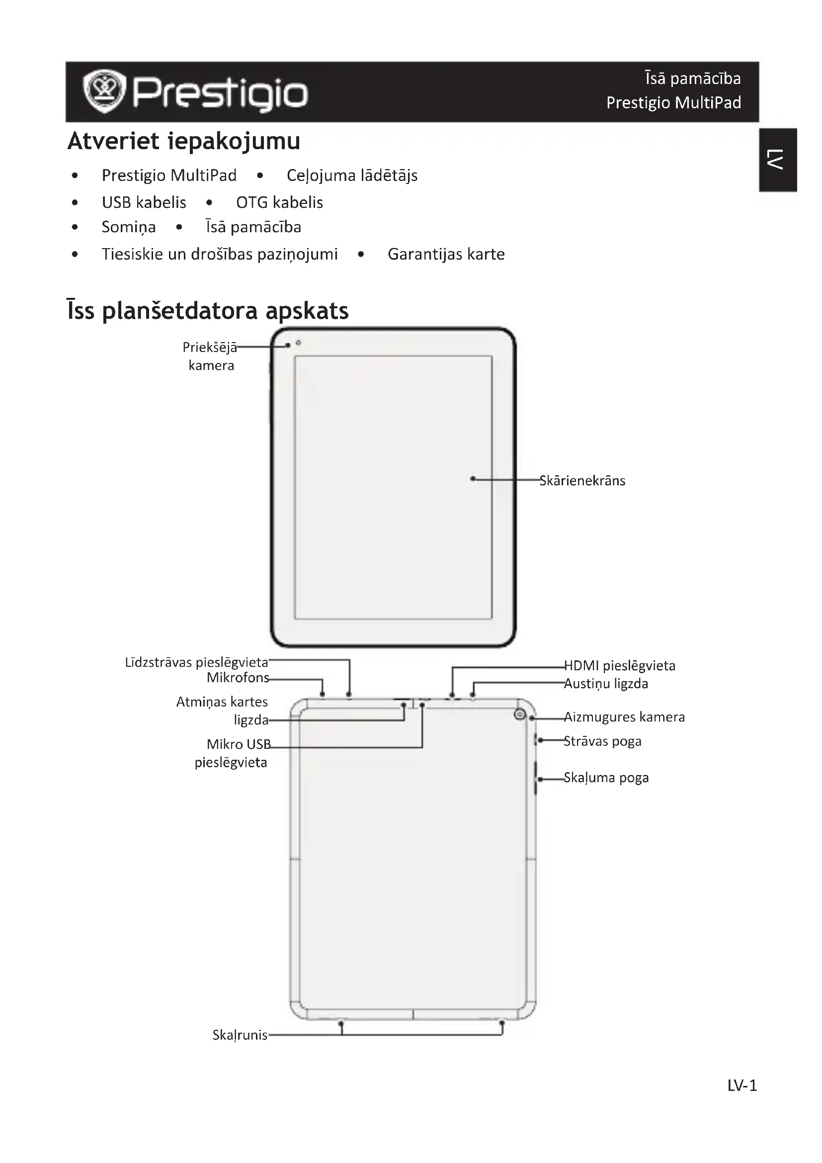 Īsā pamācība Prestigio MultiPad Atveriet iepakojumu