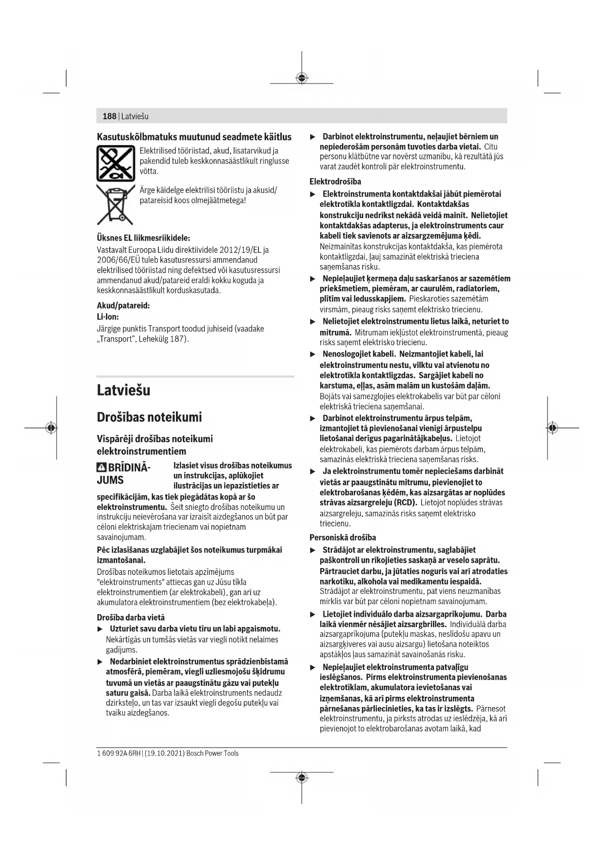 Bosch Power Tools 1 609 92A 6RH | (19.10.2021)192 | Latviešu UniversalDrill 18V-60 UniversalImpact 18V-60 Kopējā vibrācijas paātrinājuma vērtība a