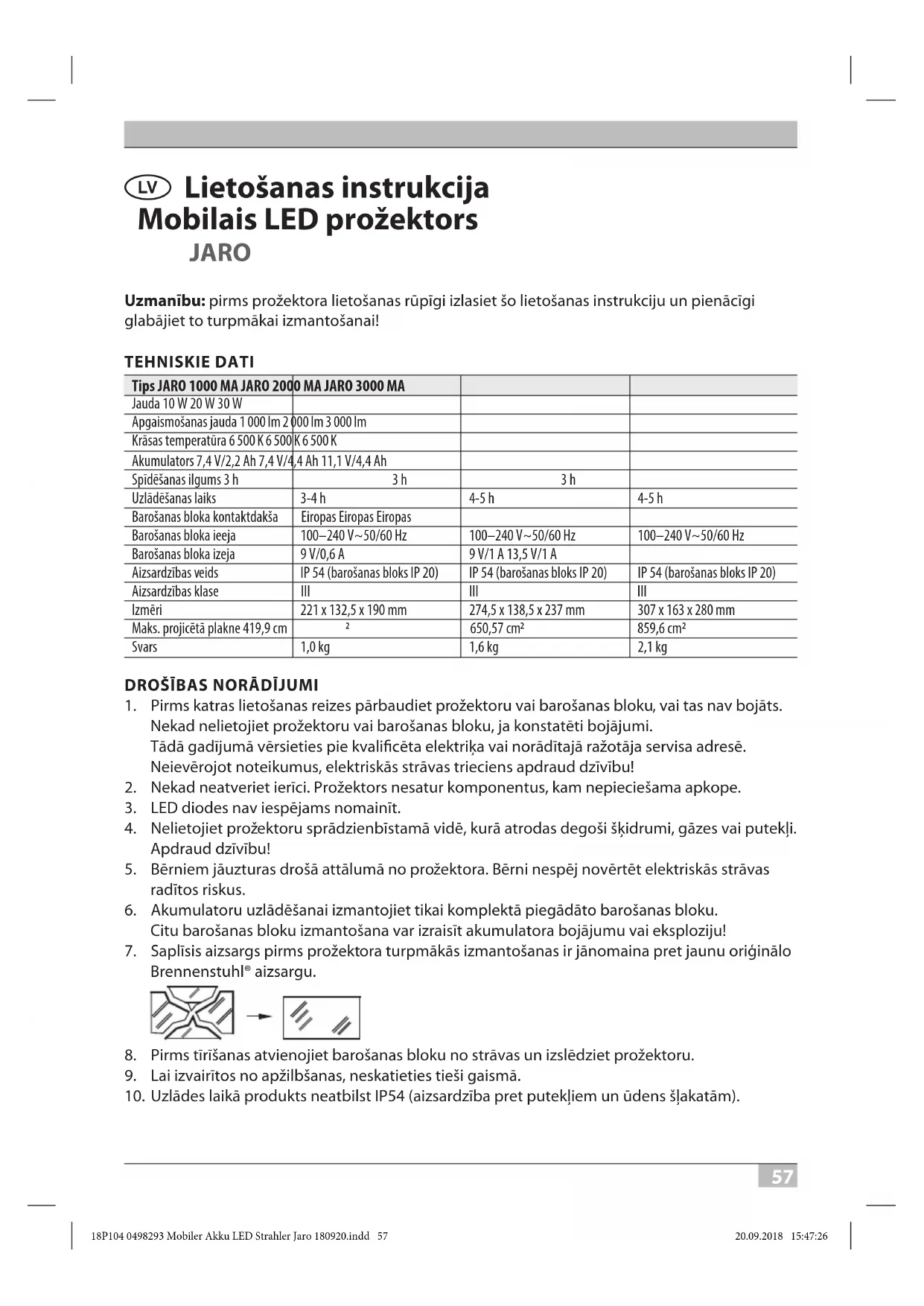 LIETOŠANAS INSTRUKCIJA JARO 3000 MA BRENNENSTUHL