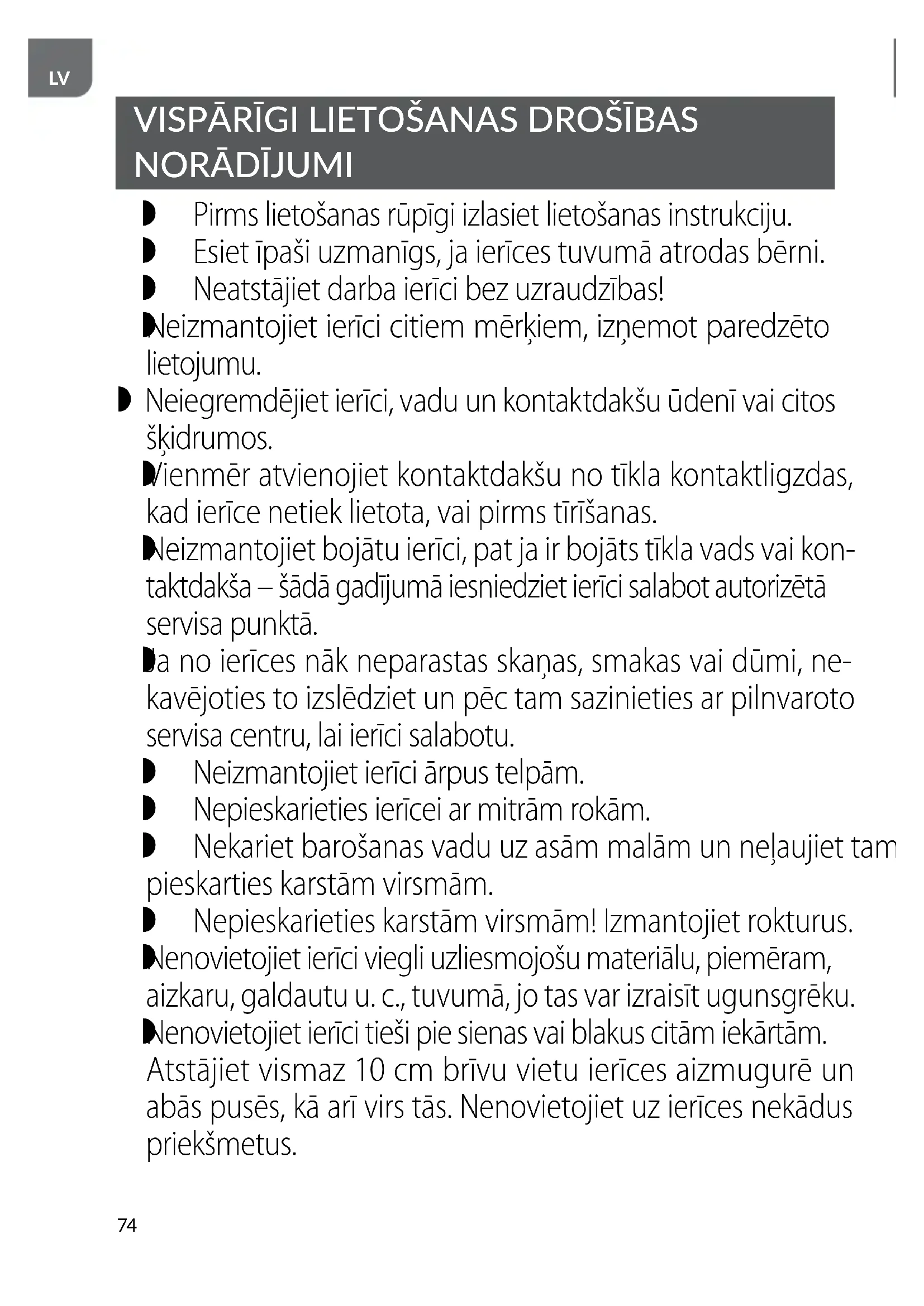 Ierīce jāpievieno tīkla kontaktligzdai ar iezemētu kontaktdakšu! Šo ierīci drīkst lietot bērni, kas ir vismaz 8 gadus veci, kā arī personas ar ierobežotām fiziskajām, garīgajām spējām un76
