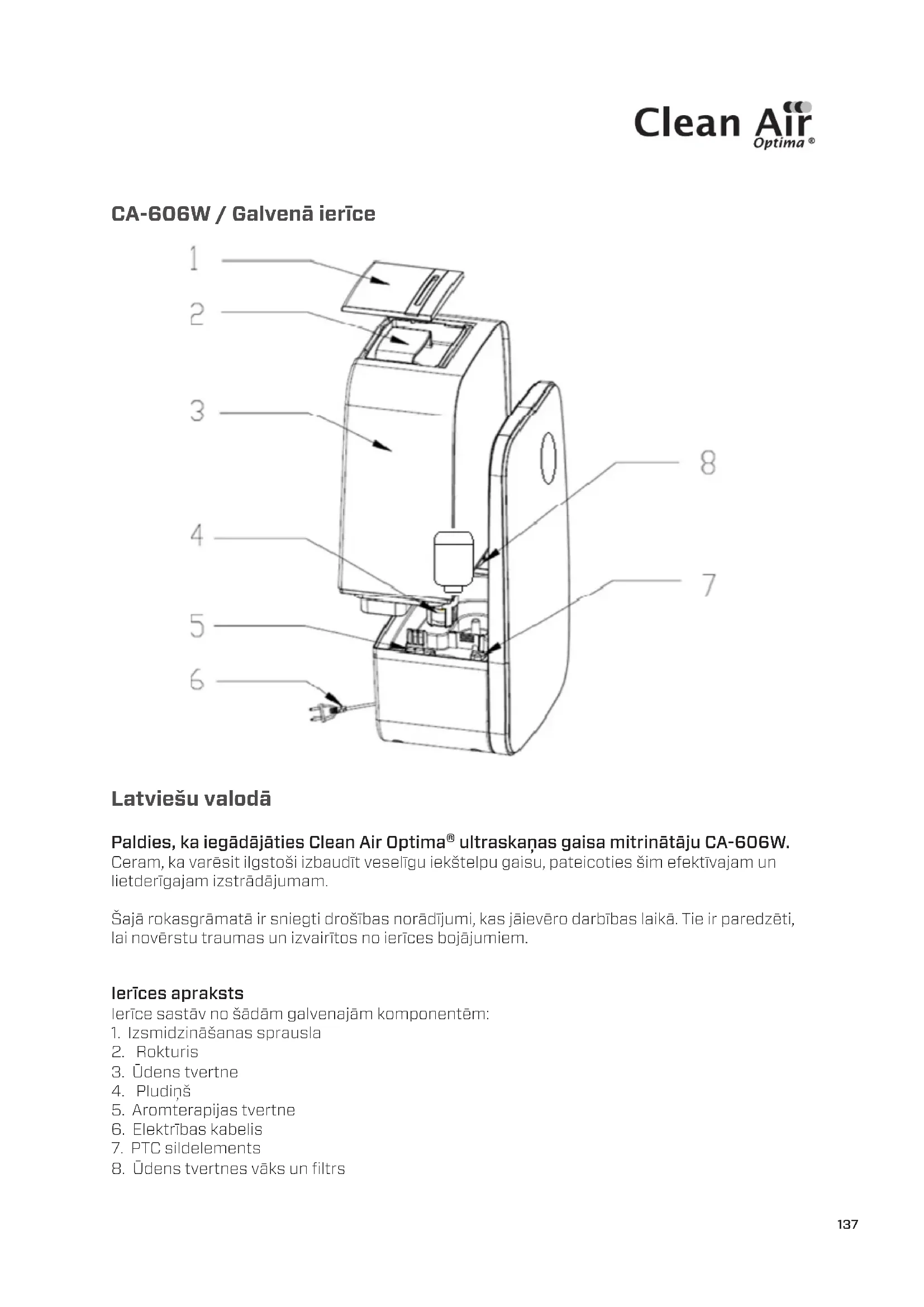 Atrodiet ierīces rokasgrāmatu bez maksas CA606 Clean Air Optima PDF formātā.