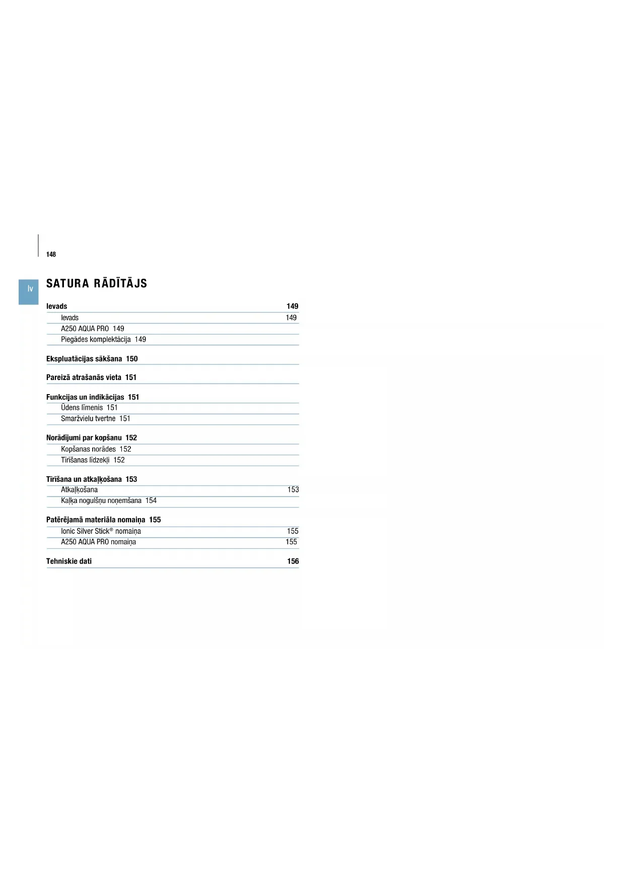 nomaiņa 155 A250 AQUA PRO nomaiņa 155 Tehniskie dati 156
