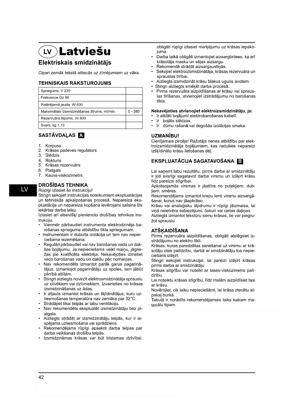 - Aizliegts strādāt ar izsmidzinātāju telpās, kur ir iespējama uzliesmošana vai sprādziens.