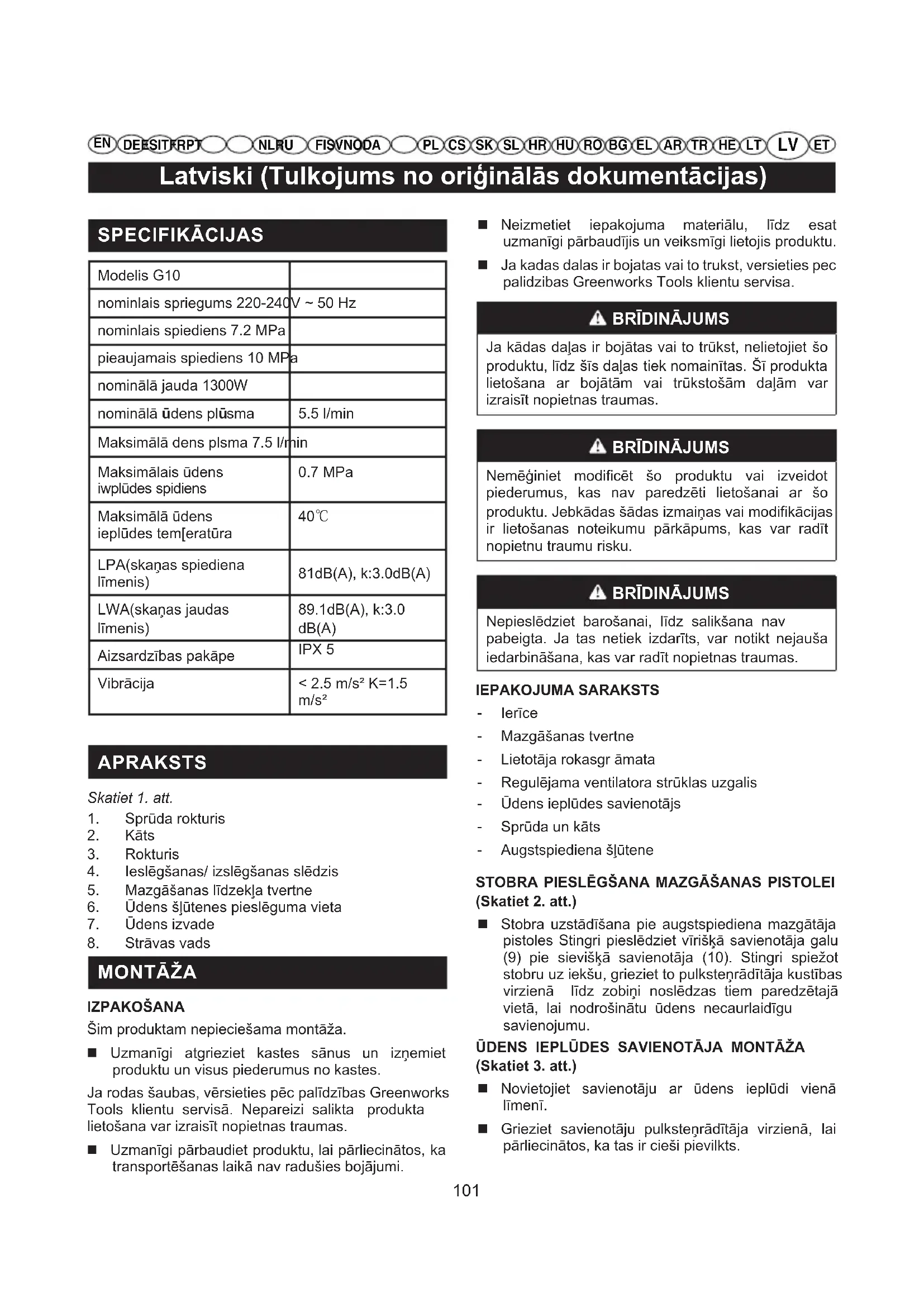 G10 - Augstspiediena tīrītājs GREENWORKS - Bezmaksas lietošanas instrukcija