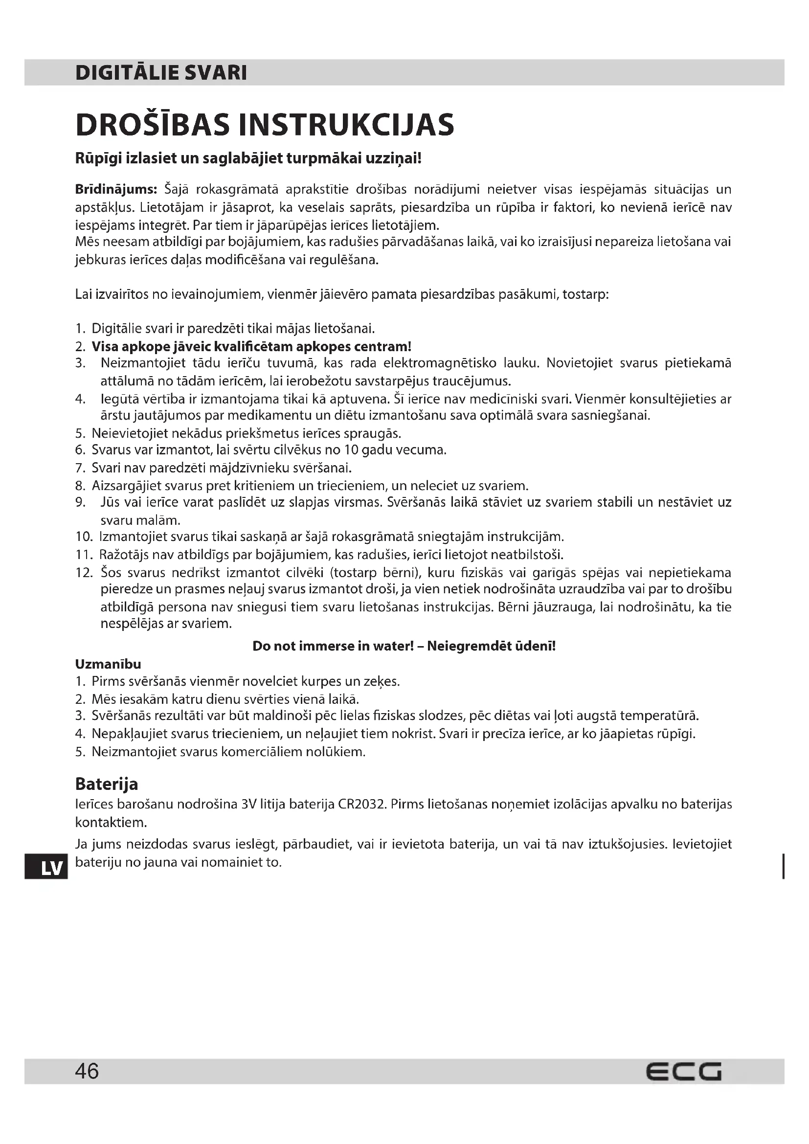 - Digitalie svari ir paredzeti tikai majas lietošanai.
