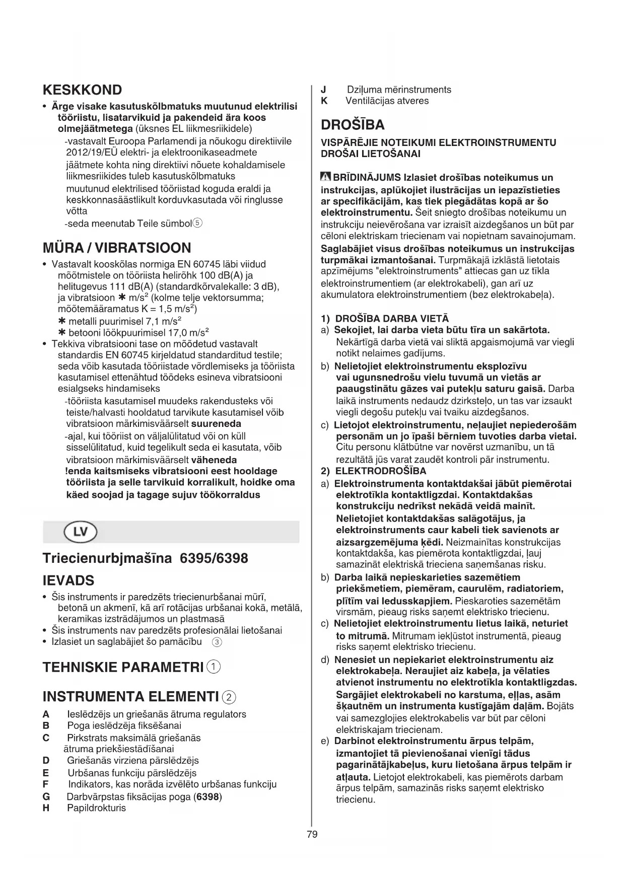 Instrumenta turesana un vadijsana 14!darba laika vienmerturiet instrumentu aiz pelekaskrasasnoturvirsmasam)-vienmerrimantoojiet papildrokturi H 2 (ta stavoklisirregulejams,ka paradits attela-nenosprostojiet instrumenta ventilacijas atveres K2-darba laikaparlieku nespiediet instrumentu; laujiet tam darboties nominalara rezima